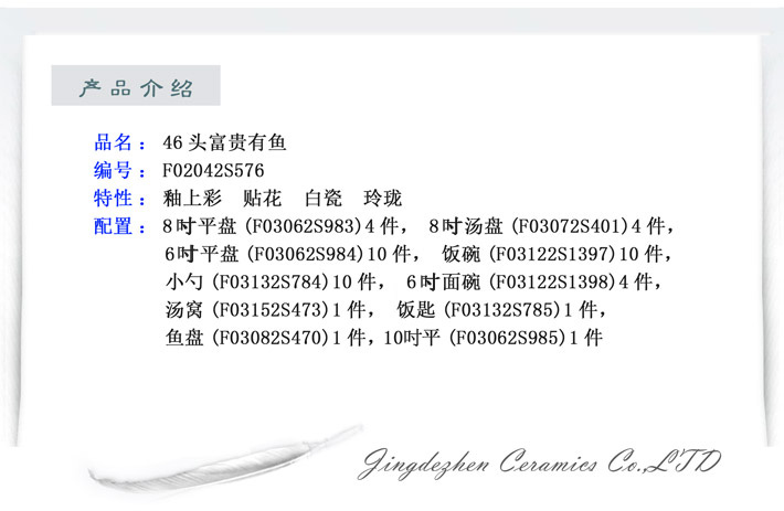 景德镇 陶瓷 国瓷红叶 46头玲珑富贵有鱼中餐具