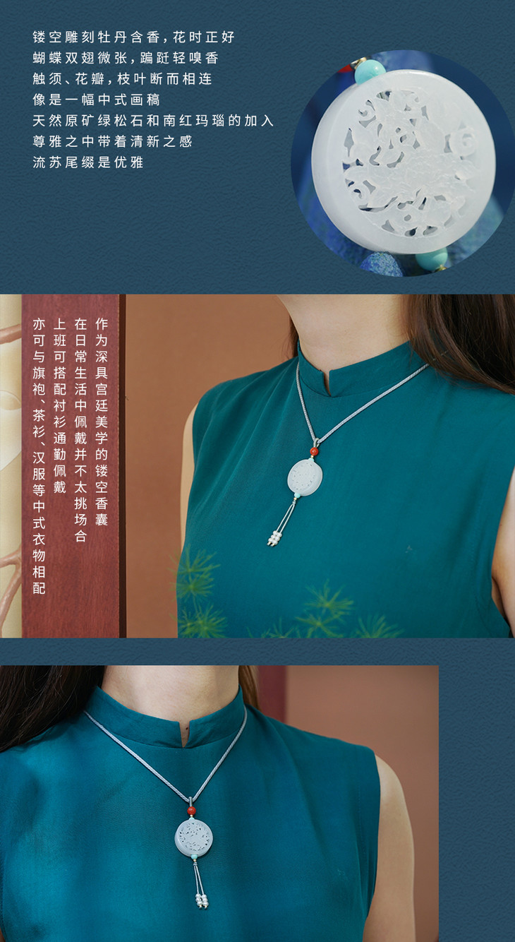 【宫里项链】和田玉羊脂白玉镂空香囊 商品图2