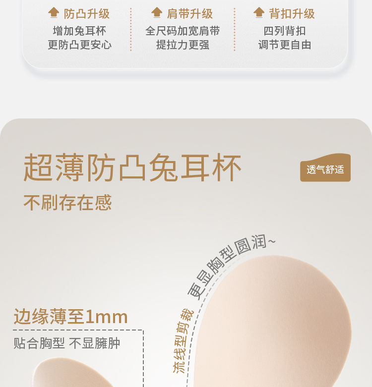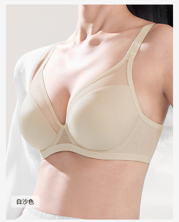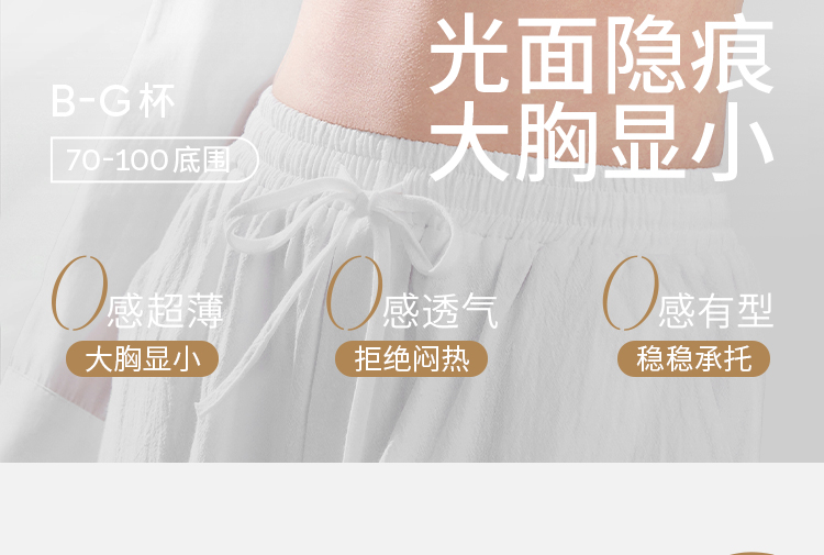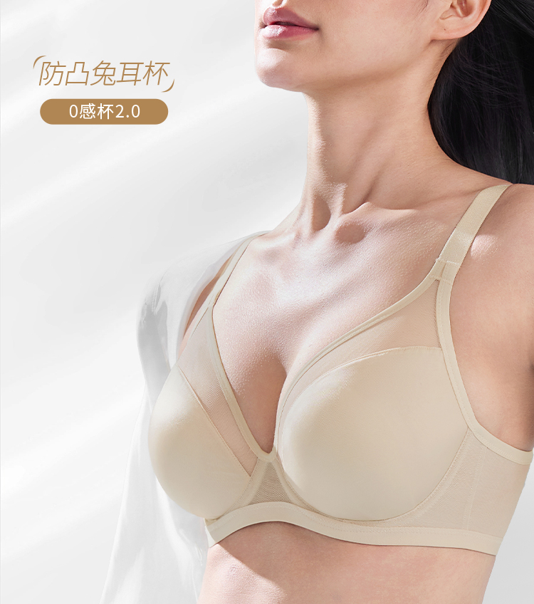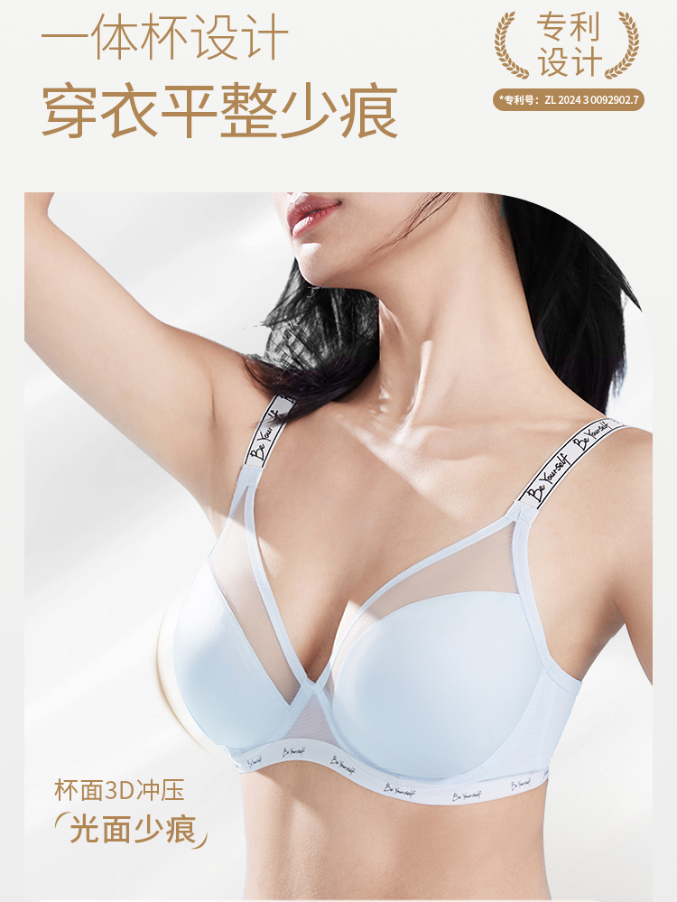 奶糖派0感杯2.0[微甜光面款]无痕内衣女大胸显小聚拢上托光面超薄文胸大码女士胸罩