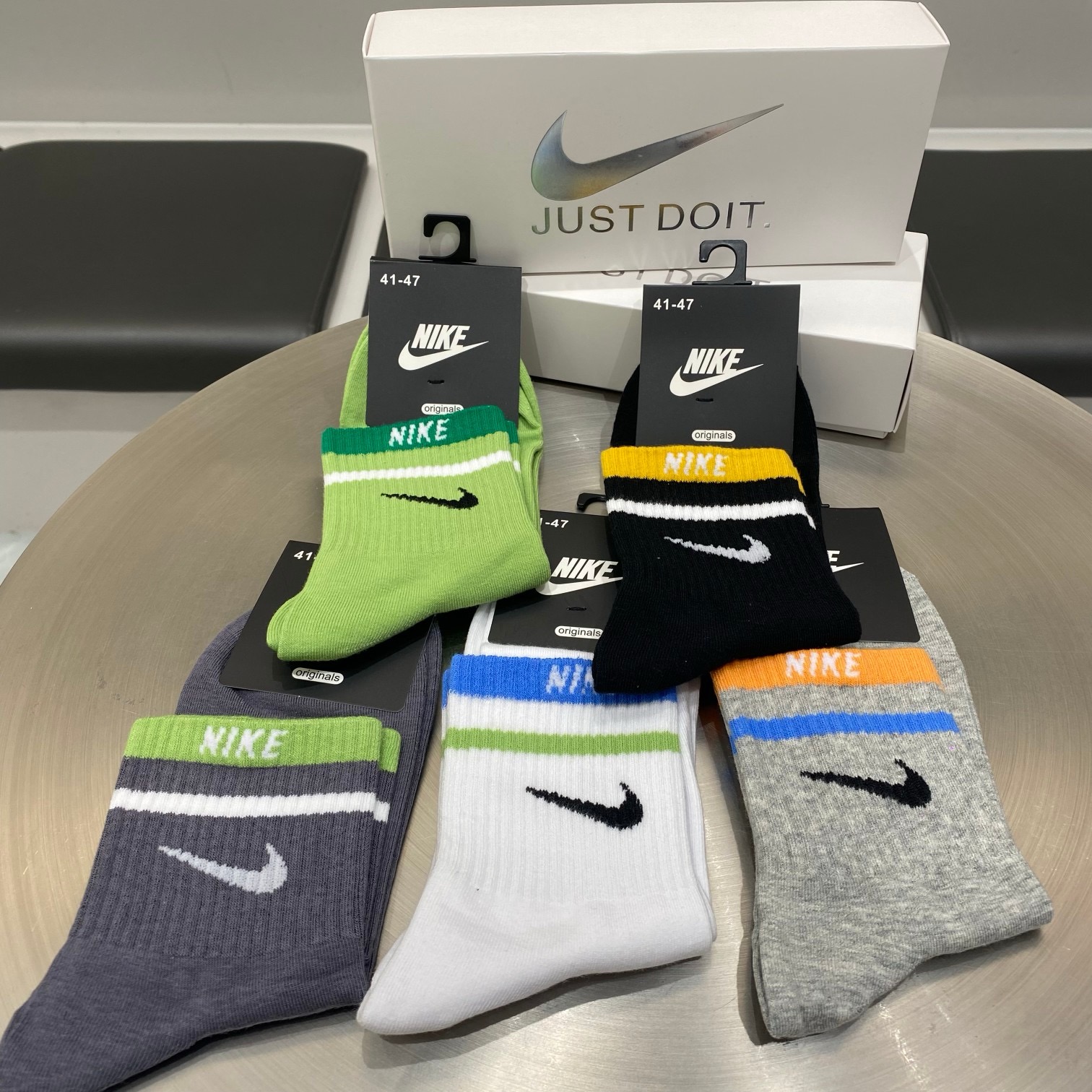 NIKE男袜礼盒袜 长袜五双装,耐克袜子。优良面料,精细做工。袜头加固,螺口部位橡筋加固加宽,可以防止在强烈的运动过程中袜筒下滑,也可以减缓袜筒给腕部带来的淤痕。