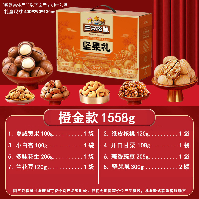 <有书独家>【中秋佳礼!心意大礼盒】三只松鼠每日坚果礼盒多种干果炒货零食大礼包混合节日中秋礼福利。rb
