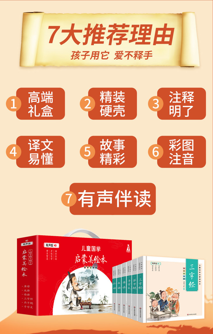 儿童国学启蒙美绘本 精装 礼盒6册全彩注音版 有声伴读