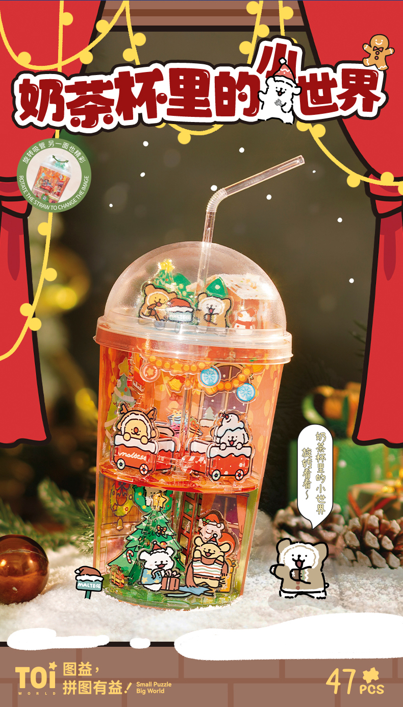 TOi图益 线条小狗 奶茶杯里的小世界 圣诞小狗 亚克力3d拼图