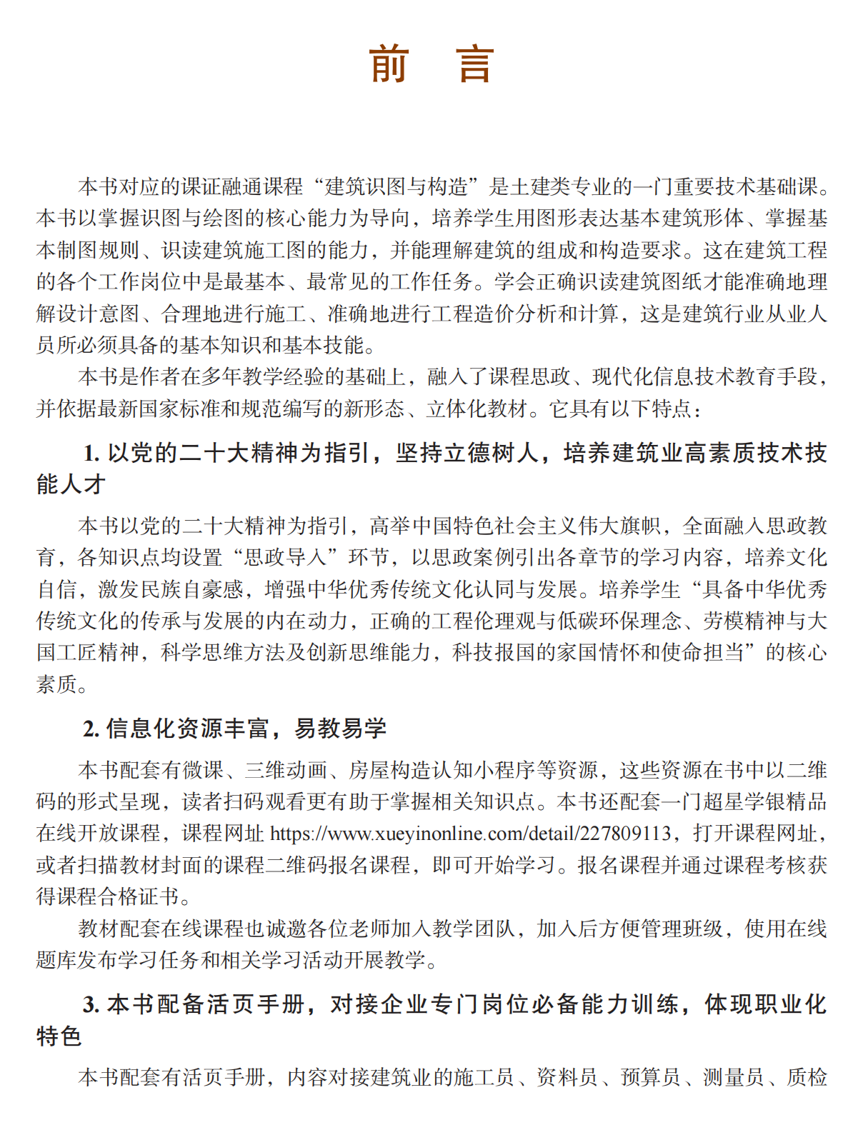 建筑识图与构造 / 王宇平 , 刘勇 , 练祥宇主编 ; 谢 芮等副主编 : 中国建材工业出版社 , 2024.4 ISBN 9787516035665