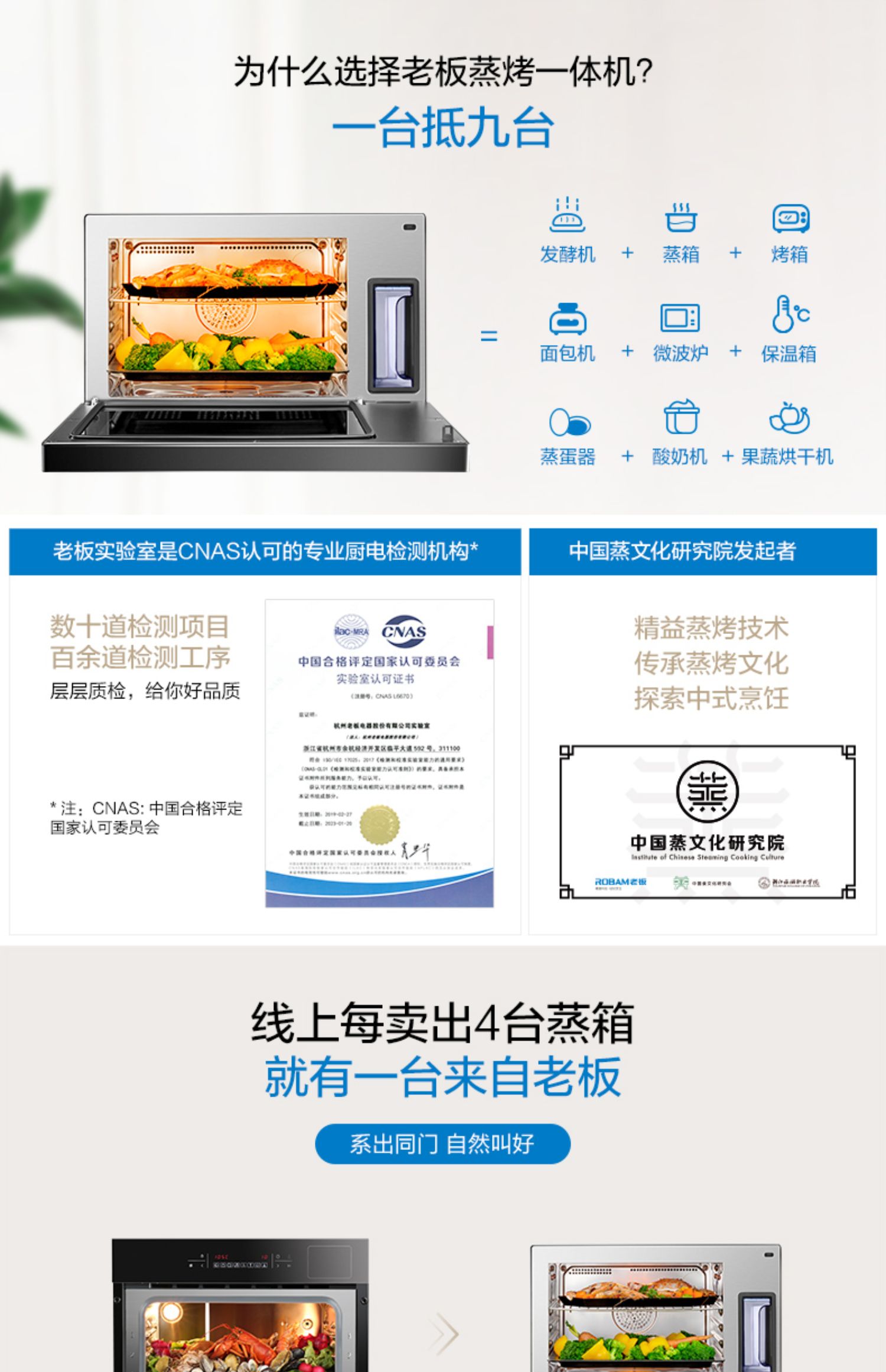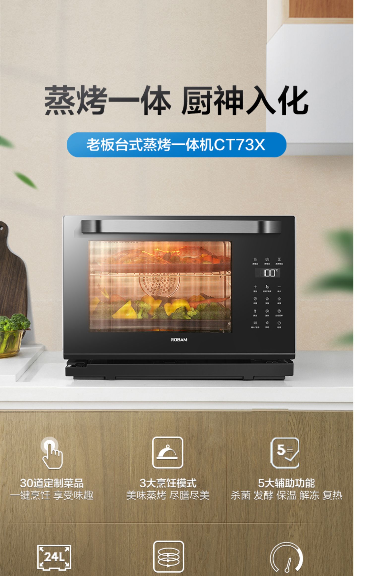老板CT73X台式蒸烤一体机二合一多功能烘焙蒸烤箱家用小型全自动