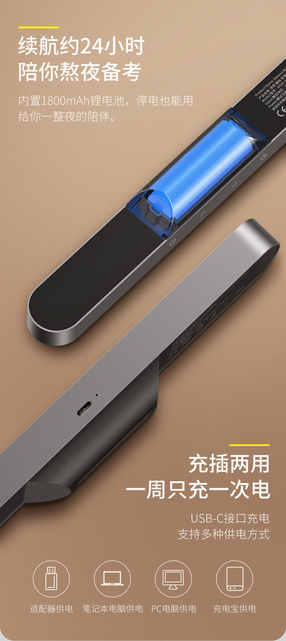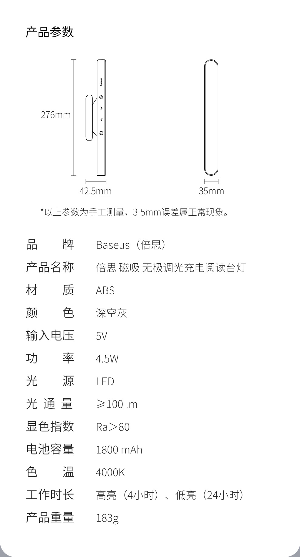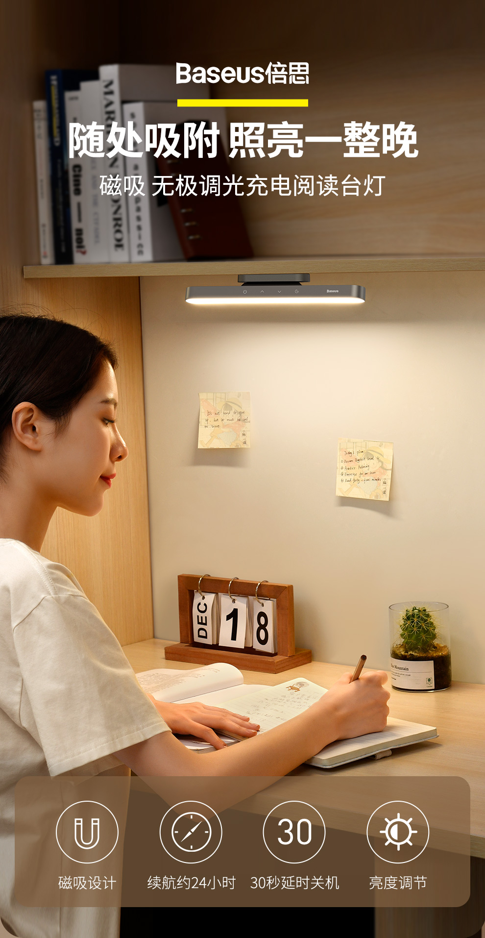 倍思 磁吸 无极调光充电阅读台灯(含:简易通用数据线 Type-c 3A 1m)