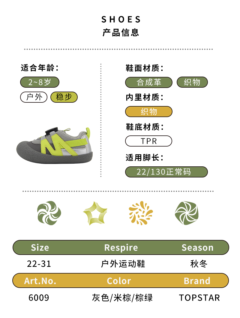 TOPSTAR2024秋季新款软底儿童运动鞋6009
