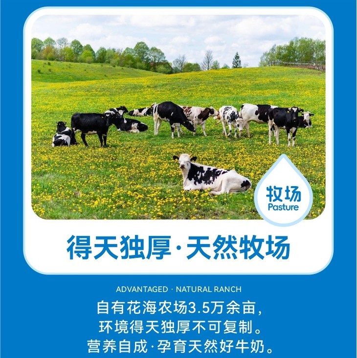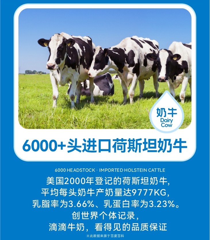 祁牧的奶牛可是正经的“新西兰移民”,95%都是荷斯坦良种奶牛。它们喝的是祁连山冰川雪水,吃的是冰川水灌溉的牧草,住的是带按摩刷的“牛豪宅”。也正因如此,产的奶指标直接对标欧盟标准。在生产环节,巴氏杀菌搭配瑞典黑科技设备,把活性营养牢牢锁住,乳蛋白含量能达到3.2g/100ml,比国标2.9g高出一截。孩子早上喝一盒200ml的,相当于摄入6.4g优质蛋白。更厉害的是它的“营养特工队”——免疫球蛋白浓度是普通奶的3倍,乳铁蛋白含量也特别高,能像“保安队长”和“铁元素搬运工”一样守护身体,乳过氧化物酶含量更是飙到普通奶的15倍!