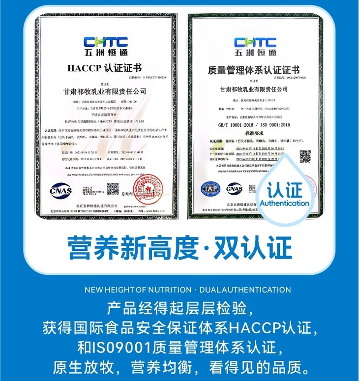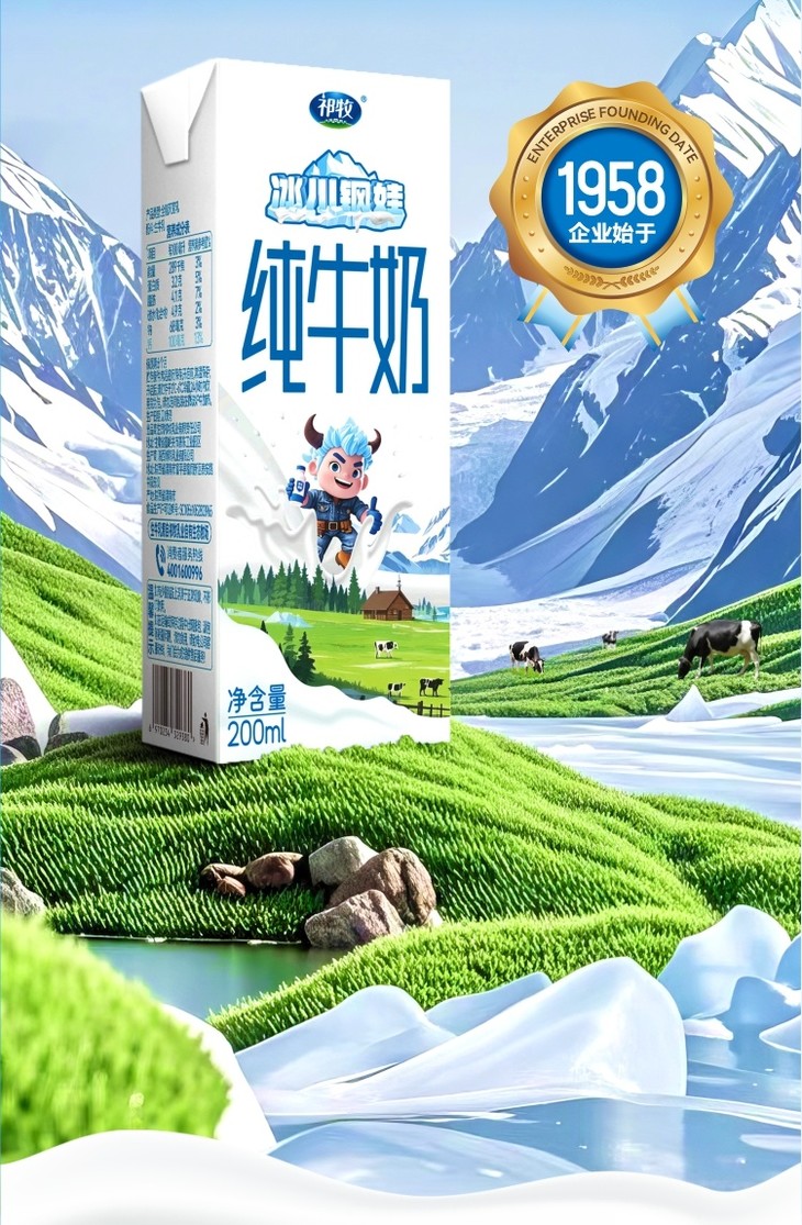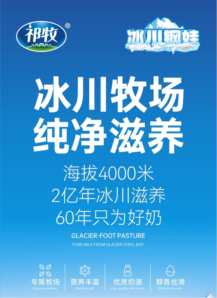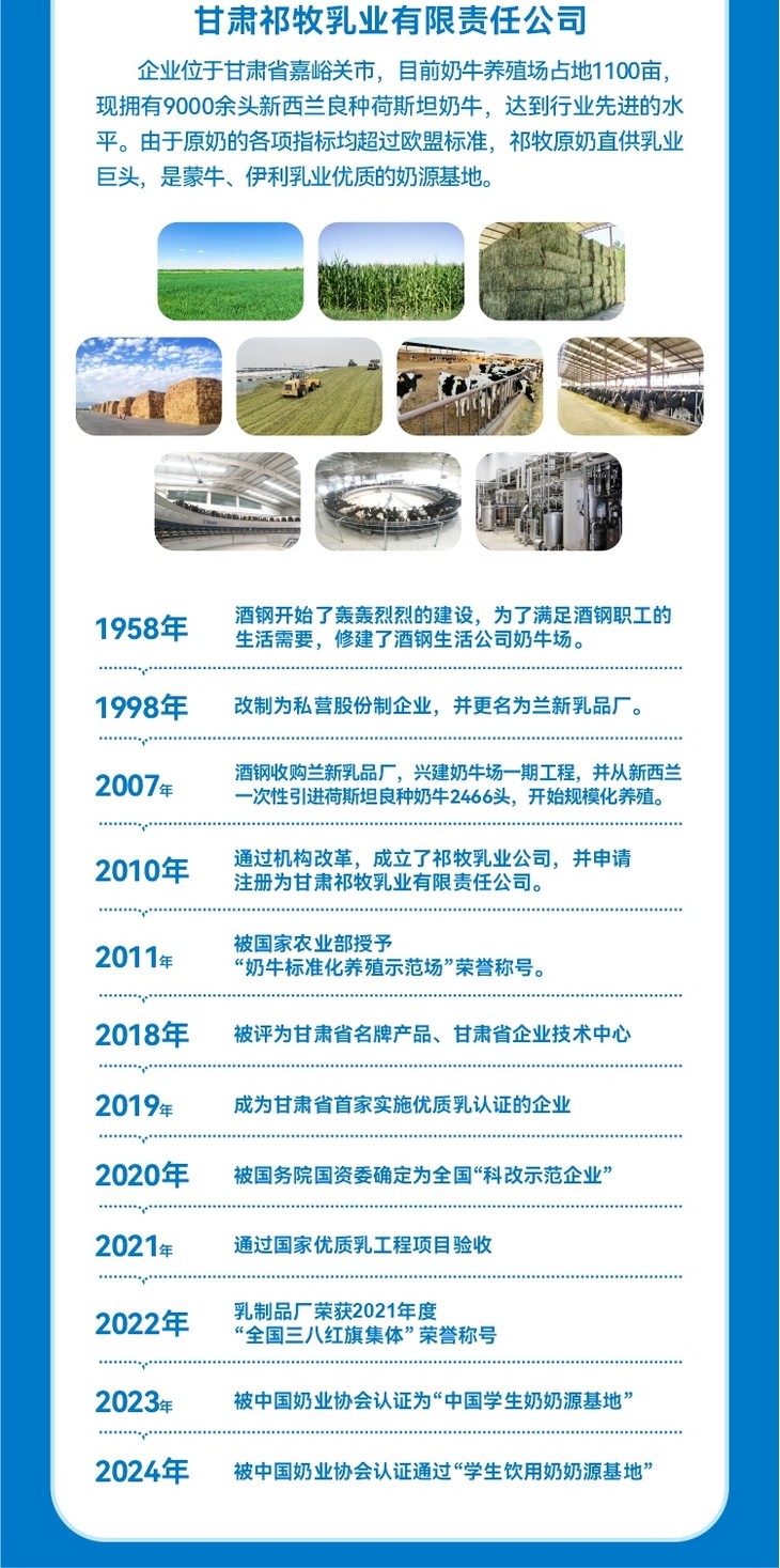甘肃祁牧乳业可是个有来头的国营乳企,它成立于1958年,扎根于甘肃嘉峪关,60多年来,一直秉承“绿色智慧、生态环保”的经营理念,从饲草种植到乳品加工全产业链把控,妥妥的“百年良心乳企”架势。而且它还被中国奶业协会认证为“中国学生奶奶源基地”,这个认证可不是随便给的,足见其实力。