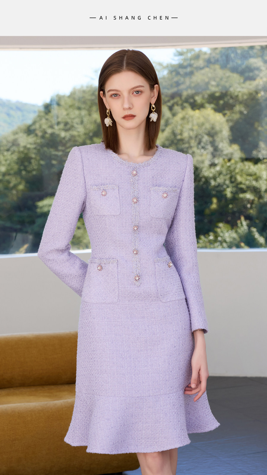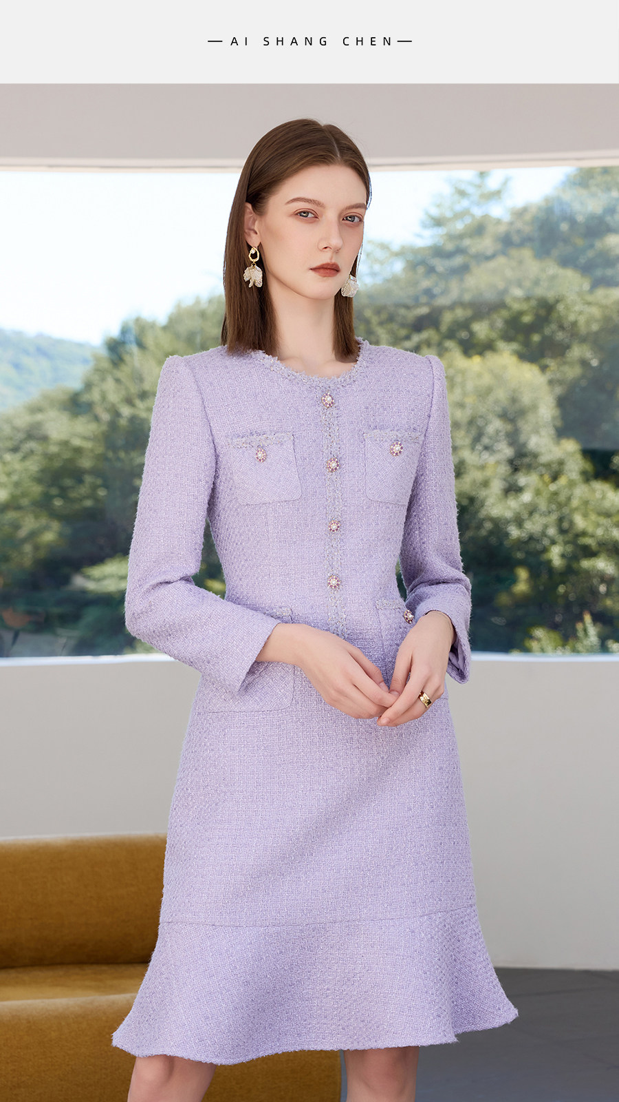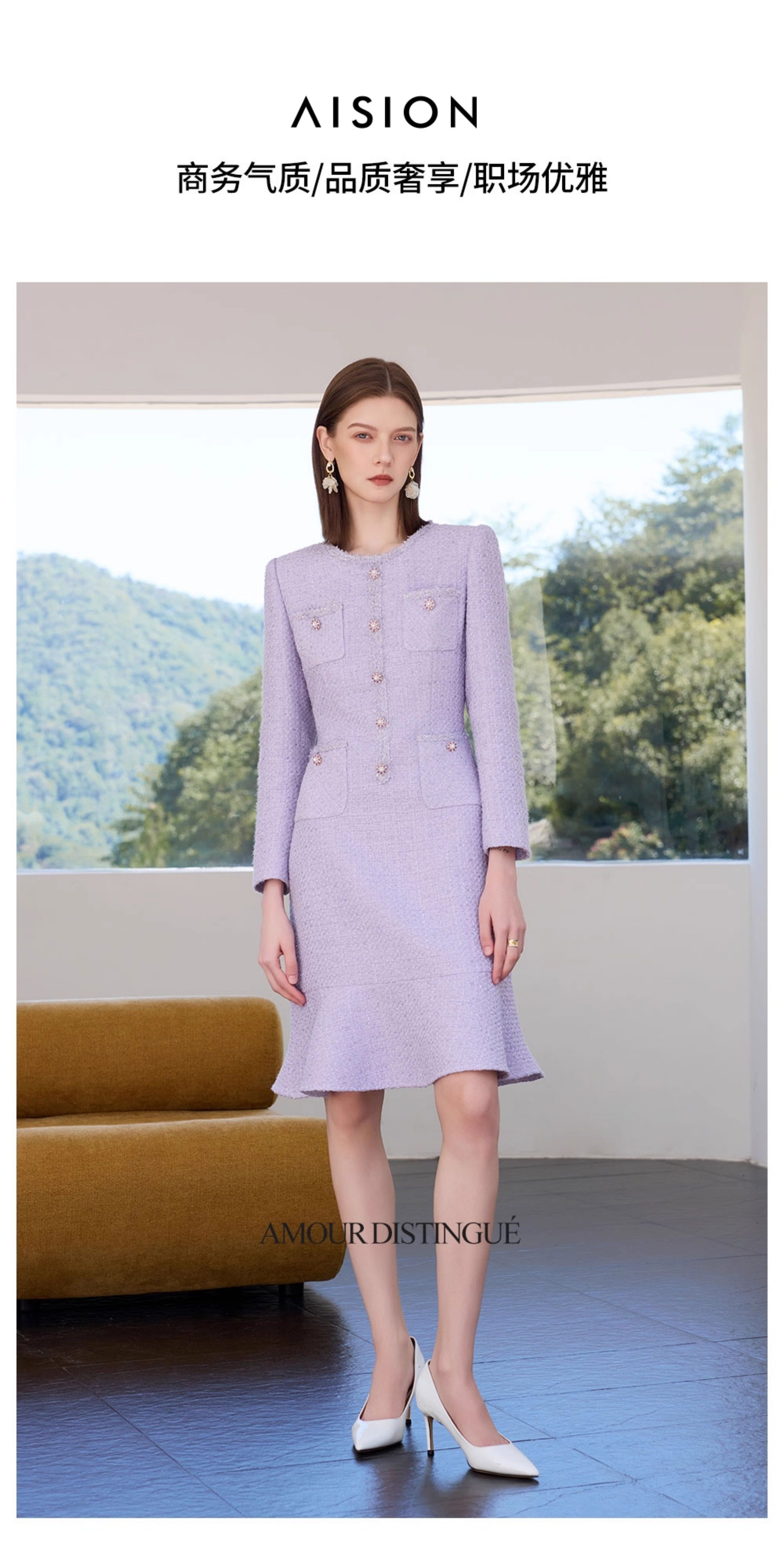 艾尚臣星河紫小香风连衣裙女高级感气质主持人修身显瘦通勤A字裙