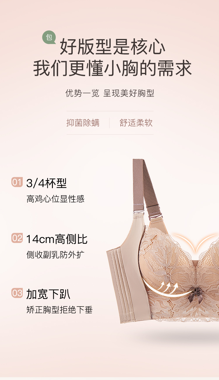 【小胸聚拢院线款】天然乳胶抑菌养护无钢圈收副乳美背文胸罩云花之恋厚