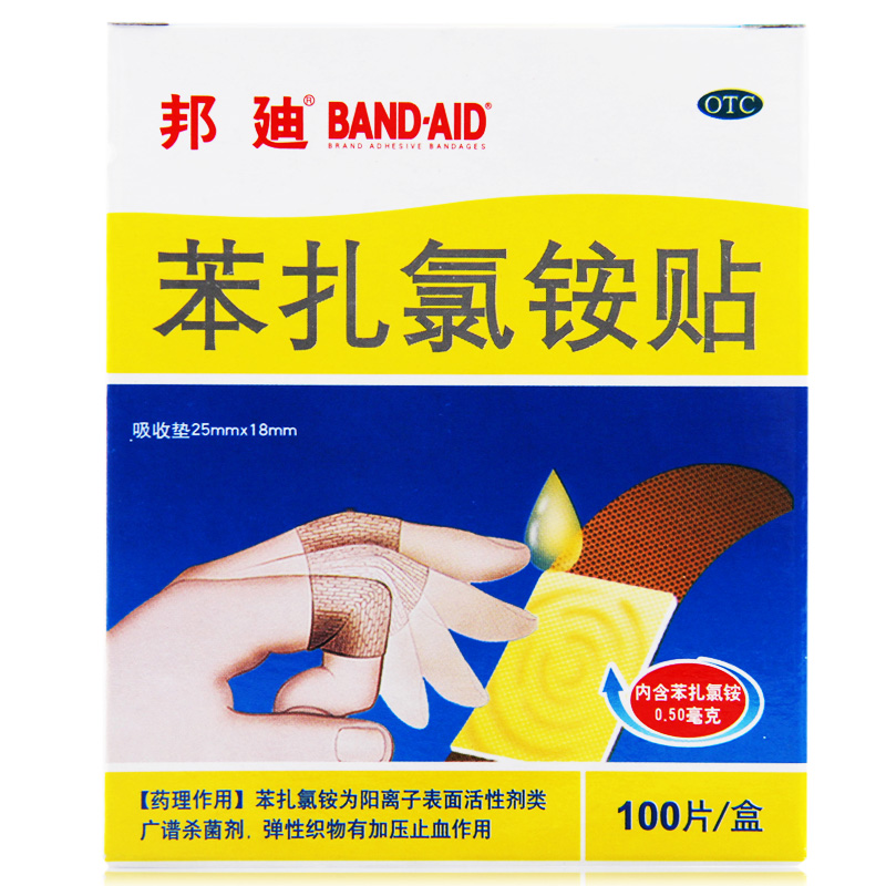 邦迪 苯扎氯铵贴 100片 用于小创伤、擦伤等患处外科用药