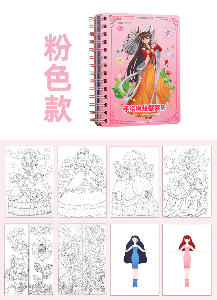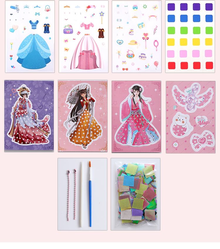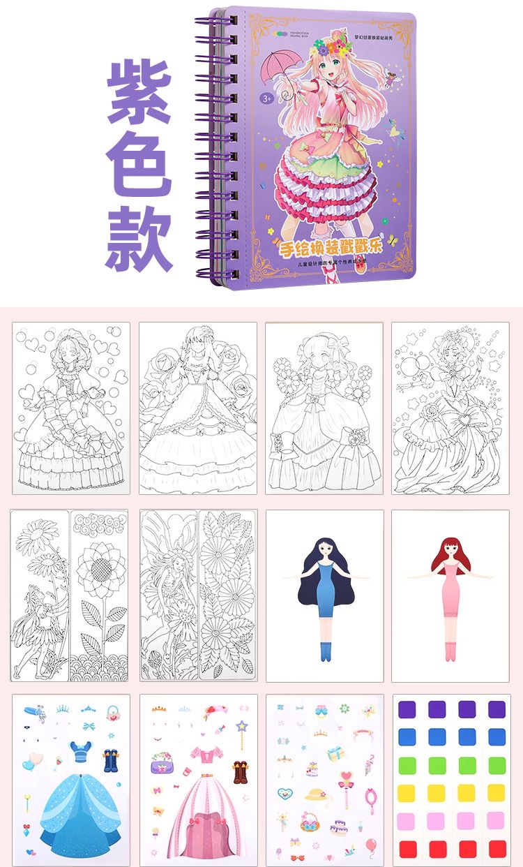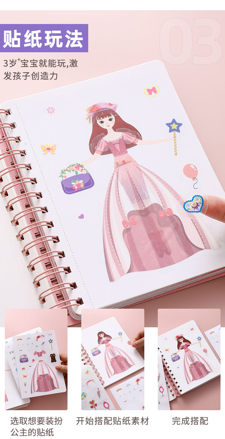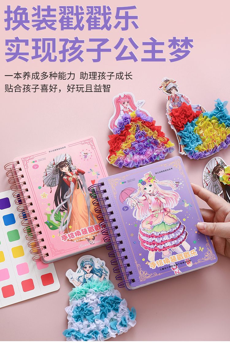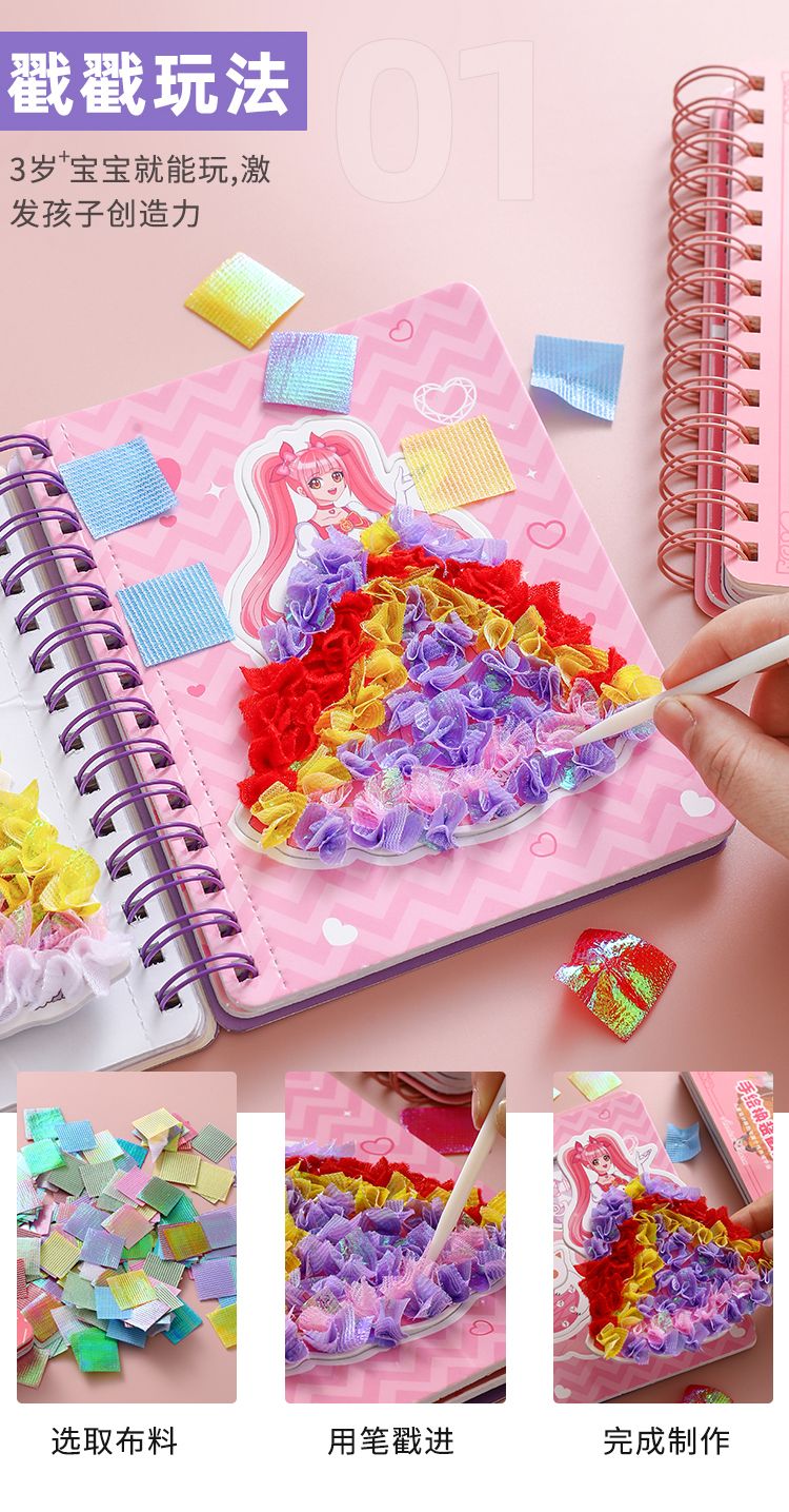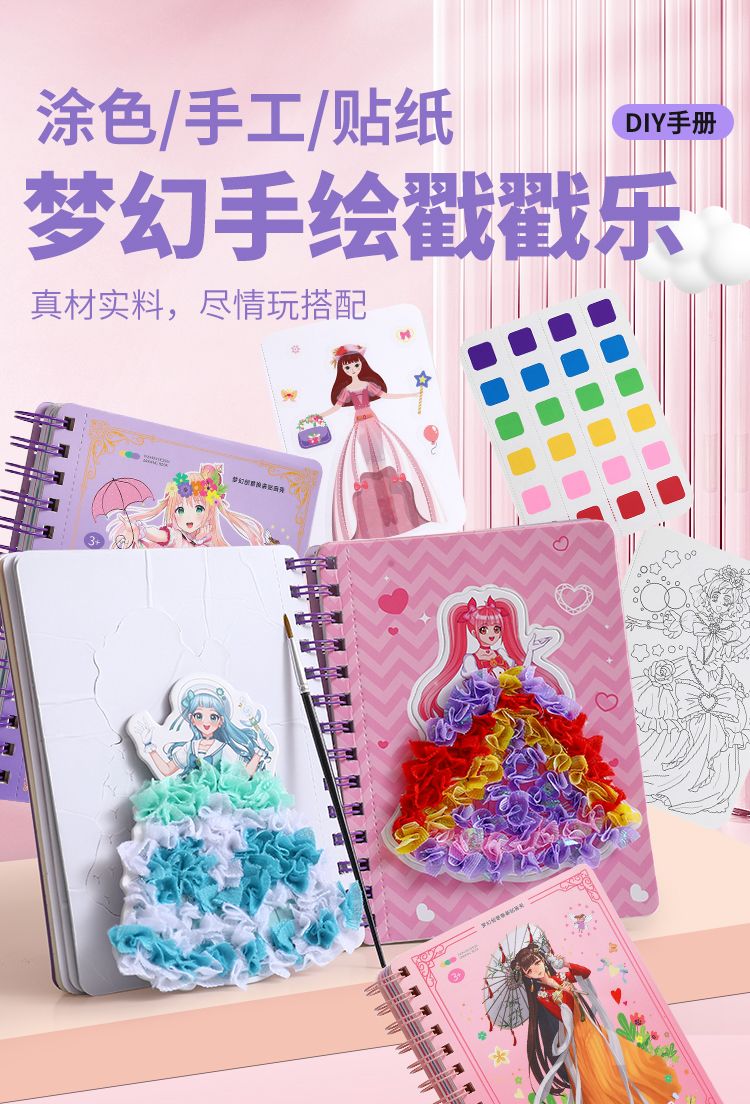 梦幻手绘戳戳乐公主换装戳公主涂色本便签本儿童手工diy小孩玩具