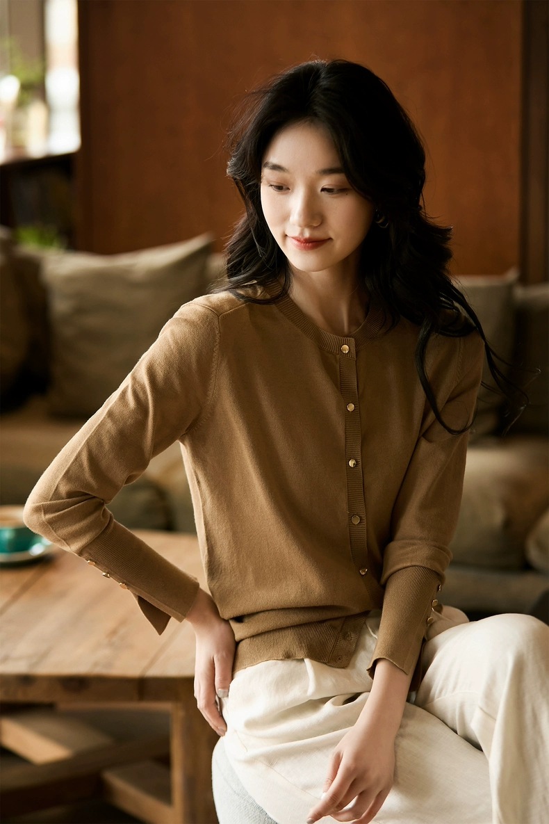 时尚减龄。一款简单的开衫横跨多季穿着,轻松时尚好搭配,好穿又实用。
