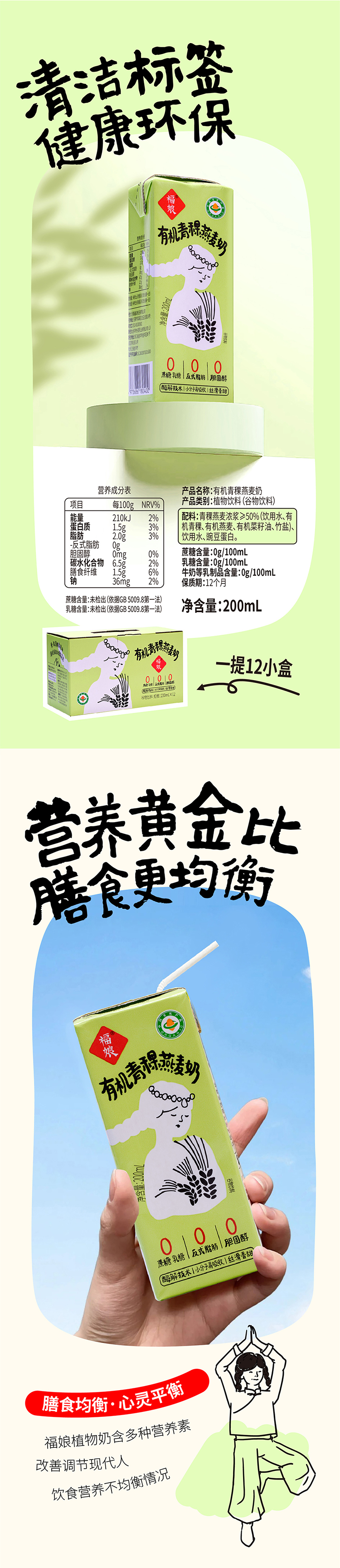 福娘原味燕麦奶 有机青稞燕麦奶 家庭装