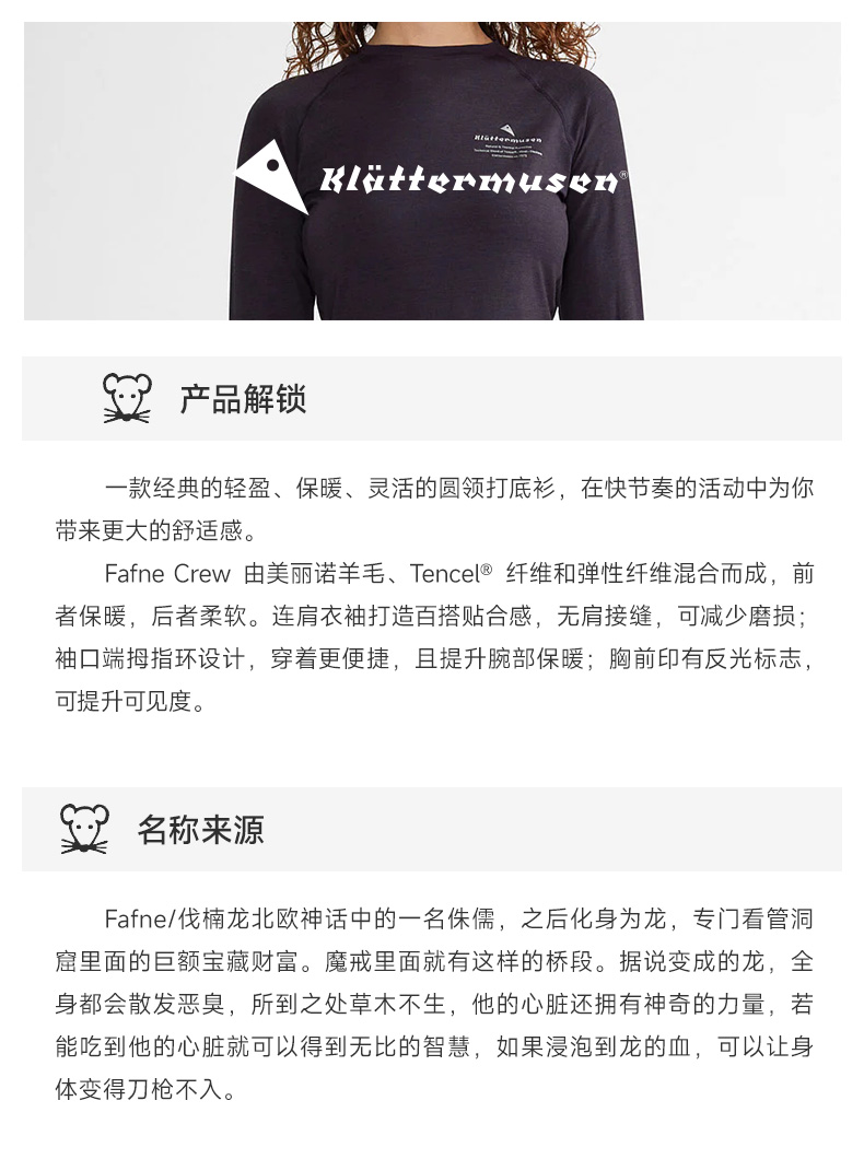 KLATTERMUSEN/攀山鼠男女款伐楠龙圆领打底速干套头保暖内衣10028