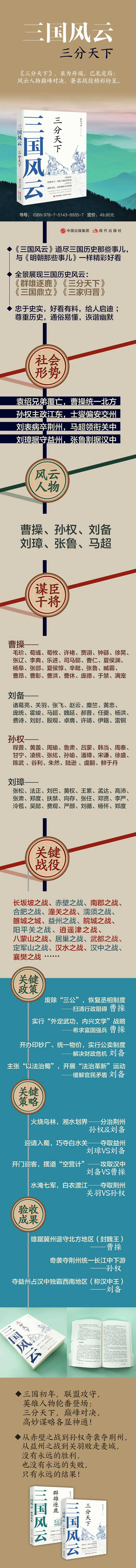 《三国风云:三分天下》从赤壁之战孙刘联合抗曹写起,到孙权夺取荆州统一长江中下游止。这一时期是三国形成期,赤壁之战曹操集团大败退守北方,孙刘联军取胜分治荆州,三分天下的局面开始确立。在此后十几年的时间里,各方不断角逐,互相攻伐,逐渐形成了以曹、刘、孙为主的三家大集团——魏、蜀、吴政权雏形初见。同时,三国历史仍然波谲云诡、战争频仍,英雄人物轮番登场,高妙谋略各显神通,著名战役继续上演,波澜壮阔,精彩纷呈。