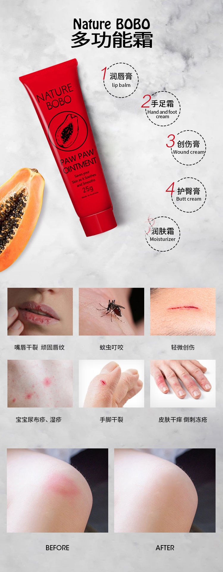澳洲原装进口BOBO木瓜膏断货王25g【买三送一】