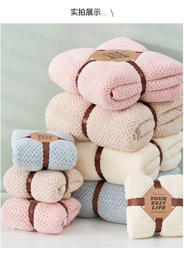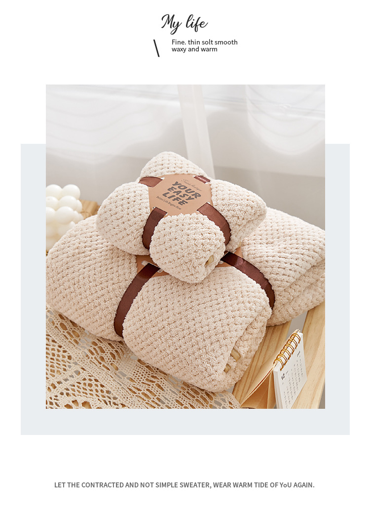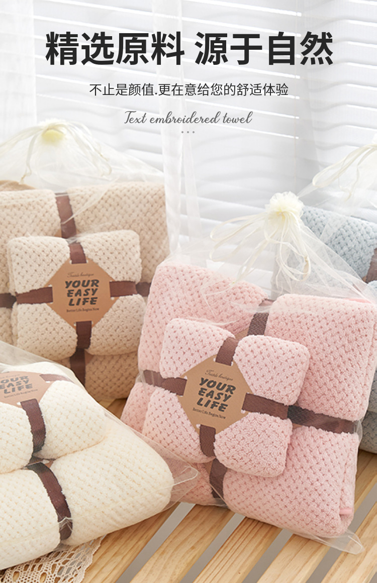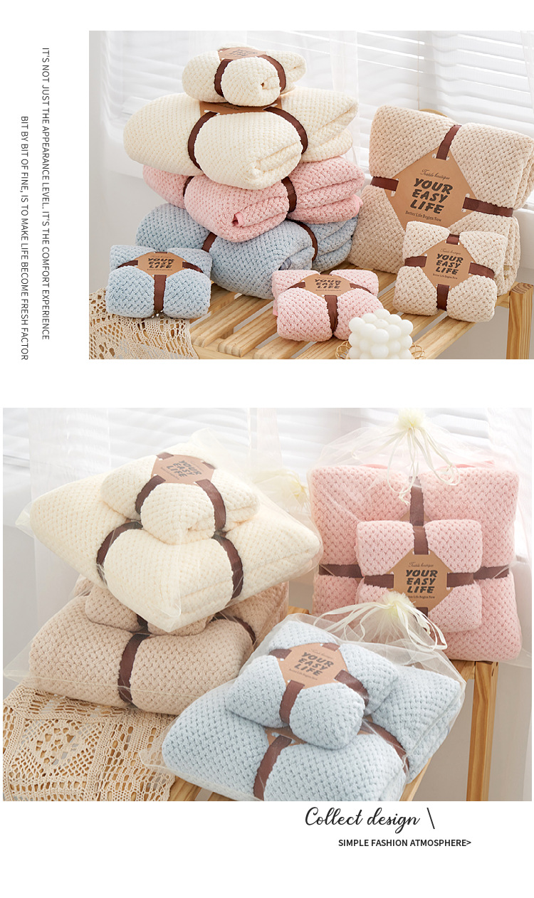 【精选原料 更在意您的舒适体验】珊瑚绒菠萝格浴巾套装吸水不易掉毛礼品子母套巾可当盖毯毛巾被