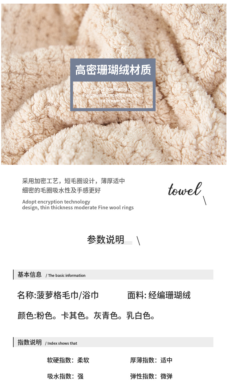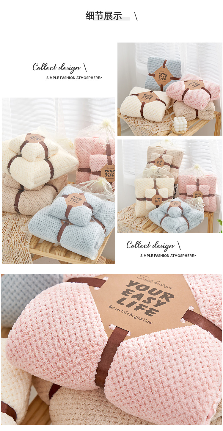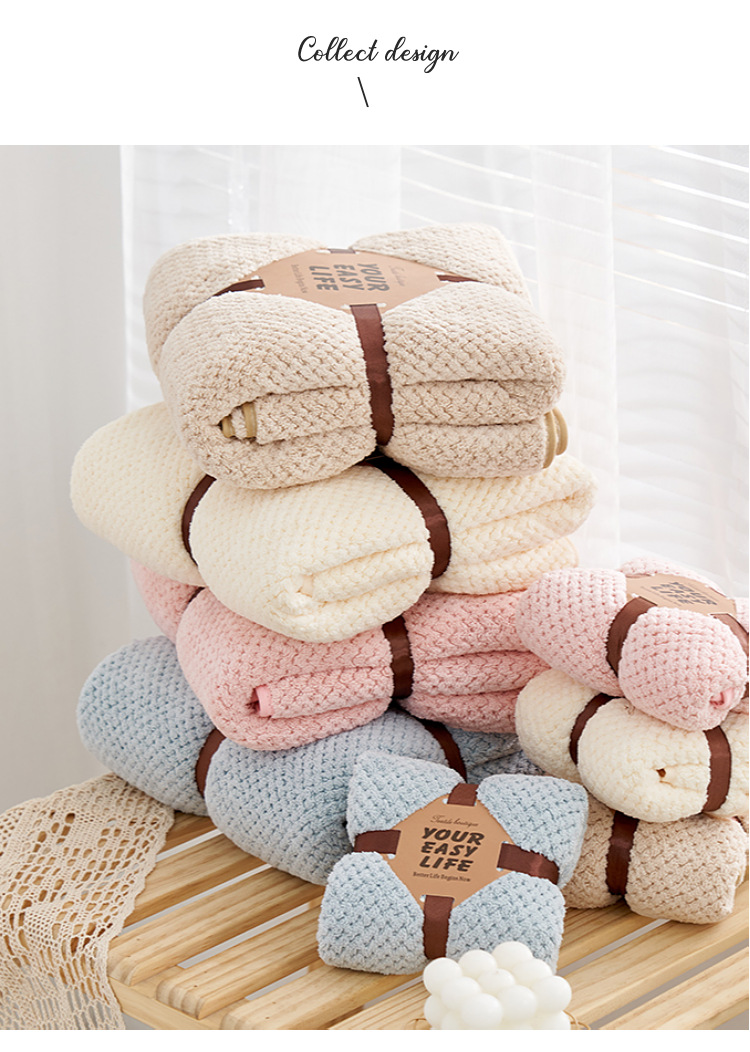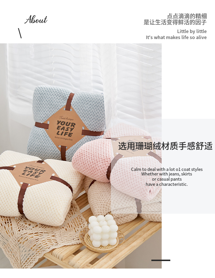 【精选原料 更在意您的舒适体验】珊瑚绒菠萝格浴巾套装吸水不易掉毛礼品子母套巾可当盖毯毛巾被