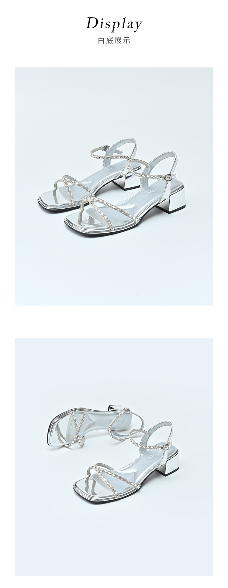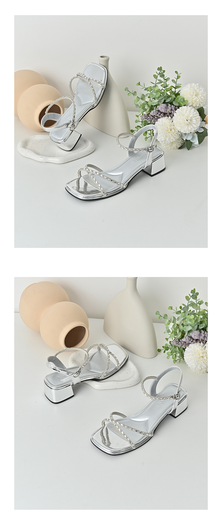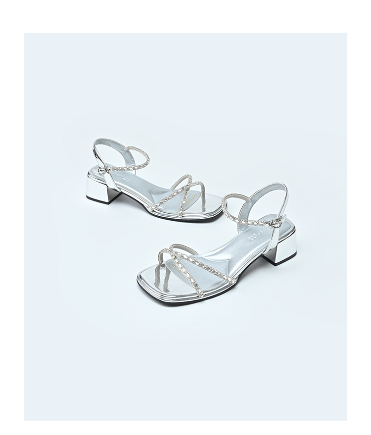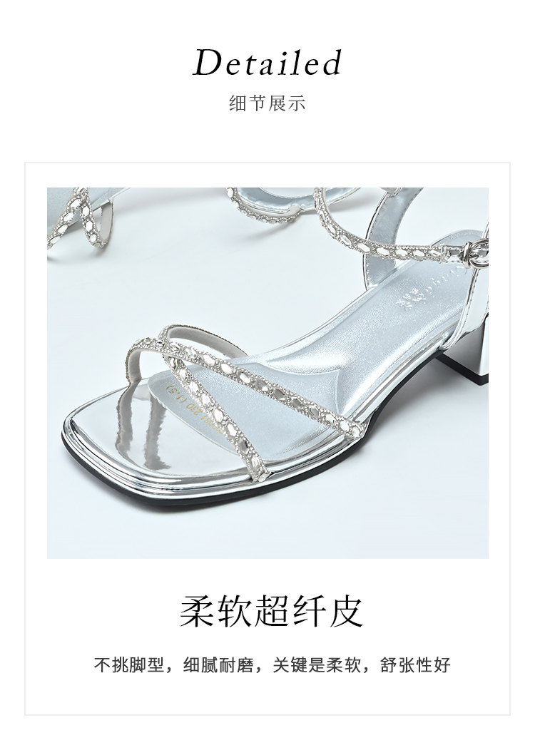 经典鲨2025夏季新款时尚银色水钻中粗跟显瘦通勤气质凉鞋女KW127-529061