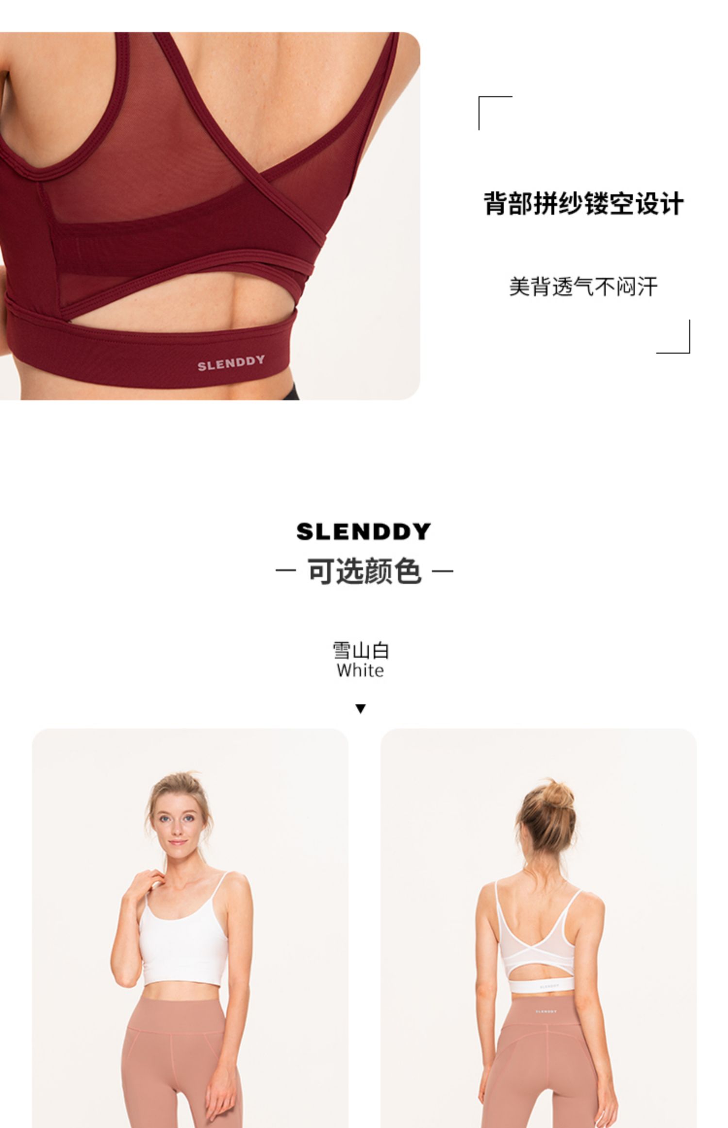 slenddy Asteria网纱款露背亲肤瑜伽内衣运动健身防震文胸女S8004