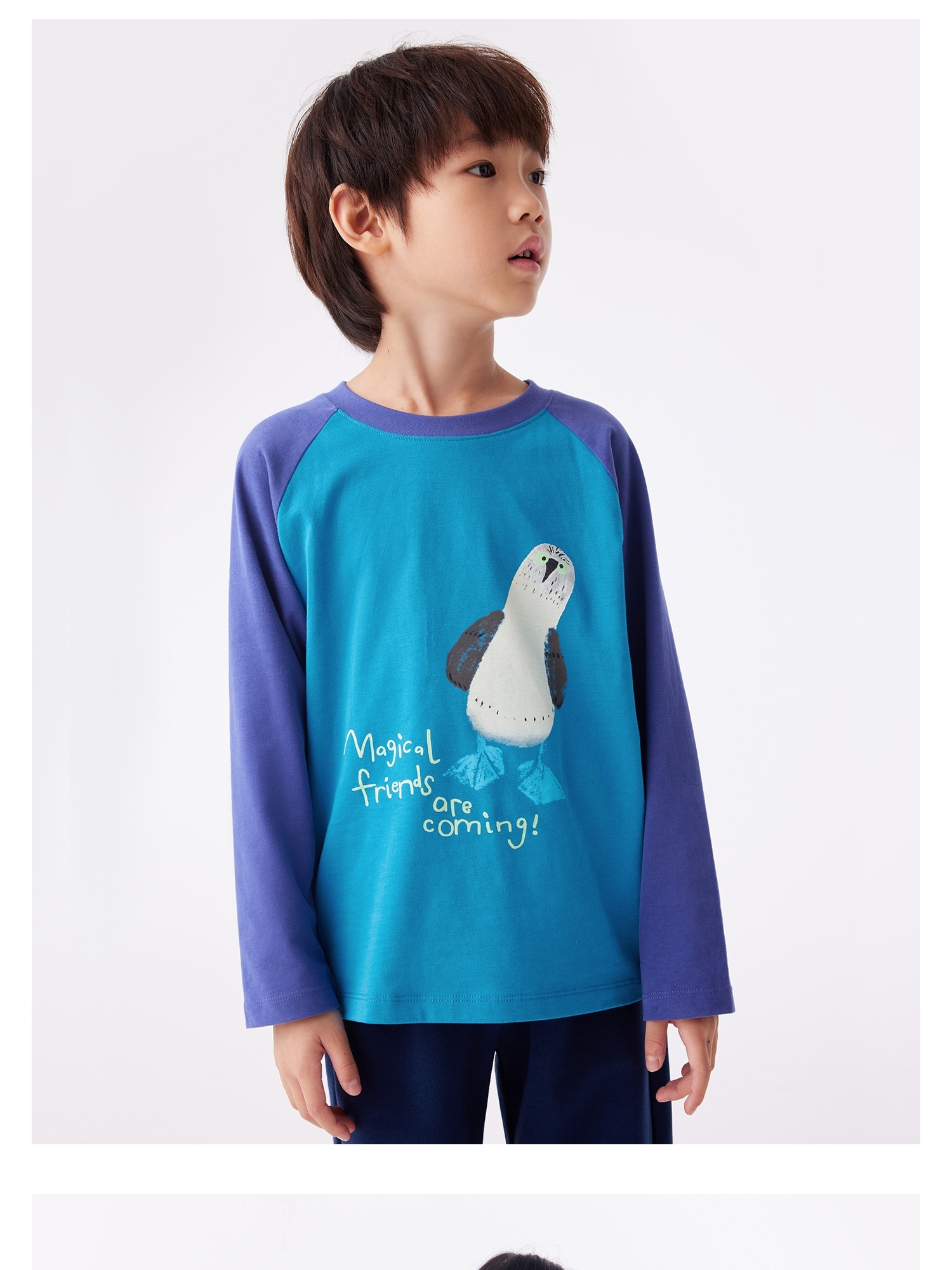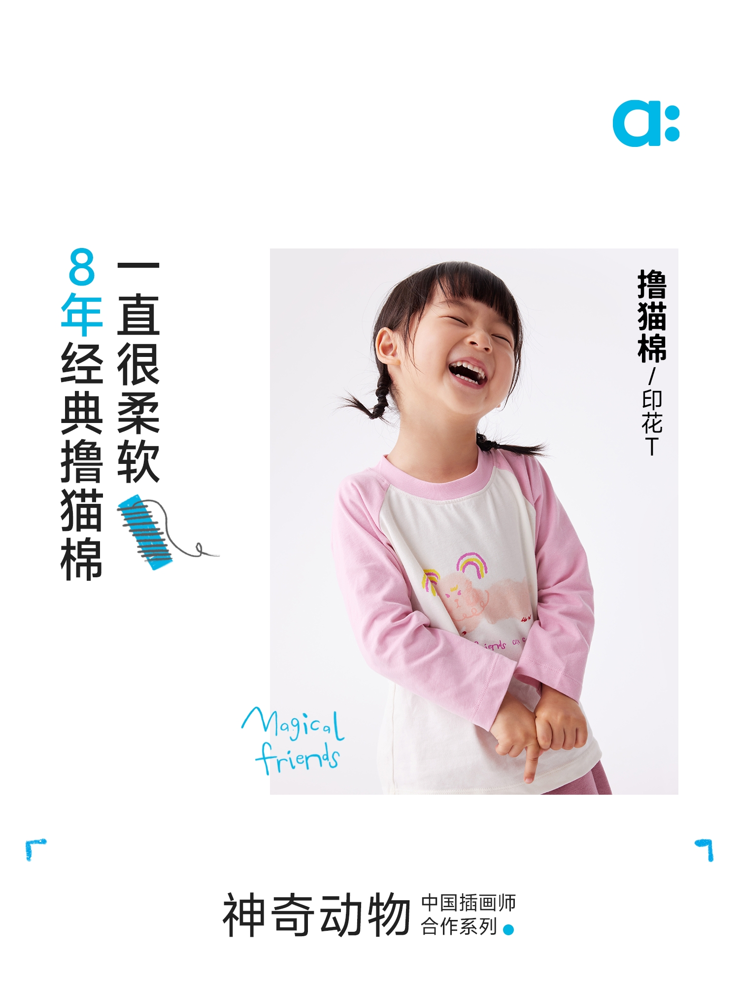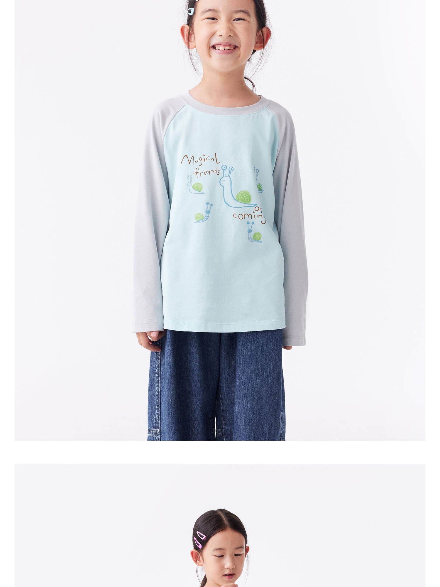 【粉丝专属】allblu幼岚【撸猫棉】儿童长袖t恤女男童25春季新款印花插肩上衣
