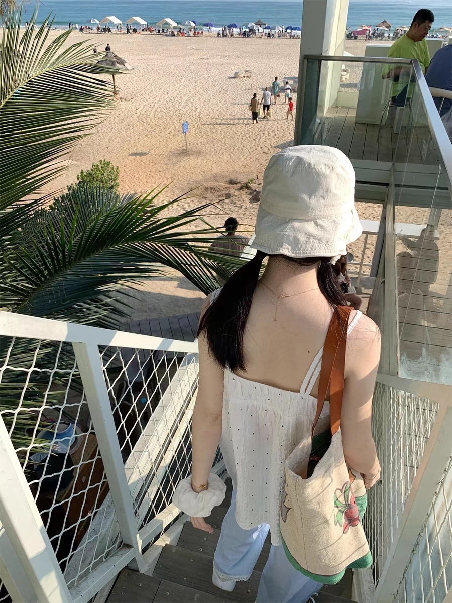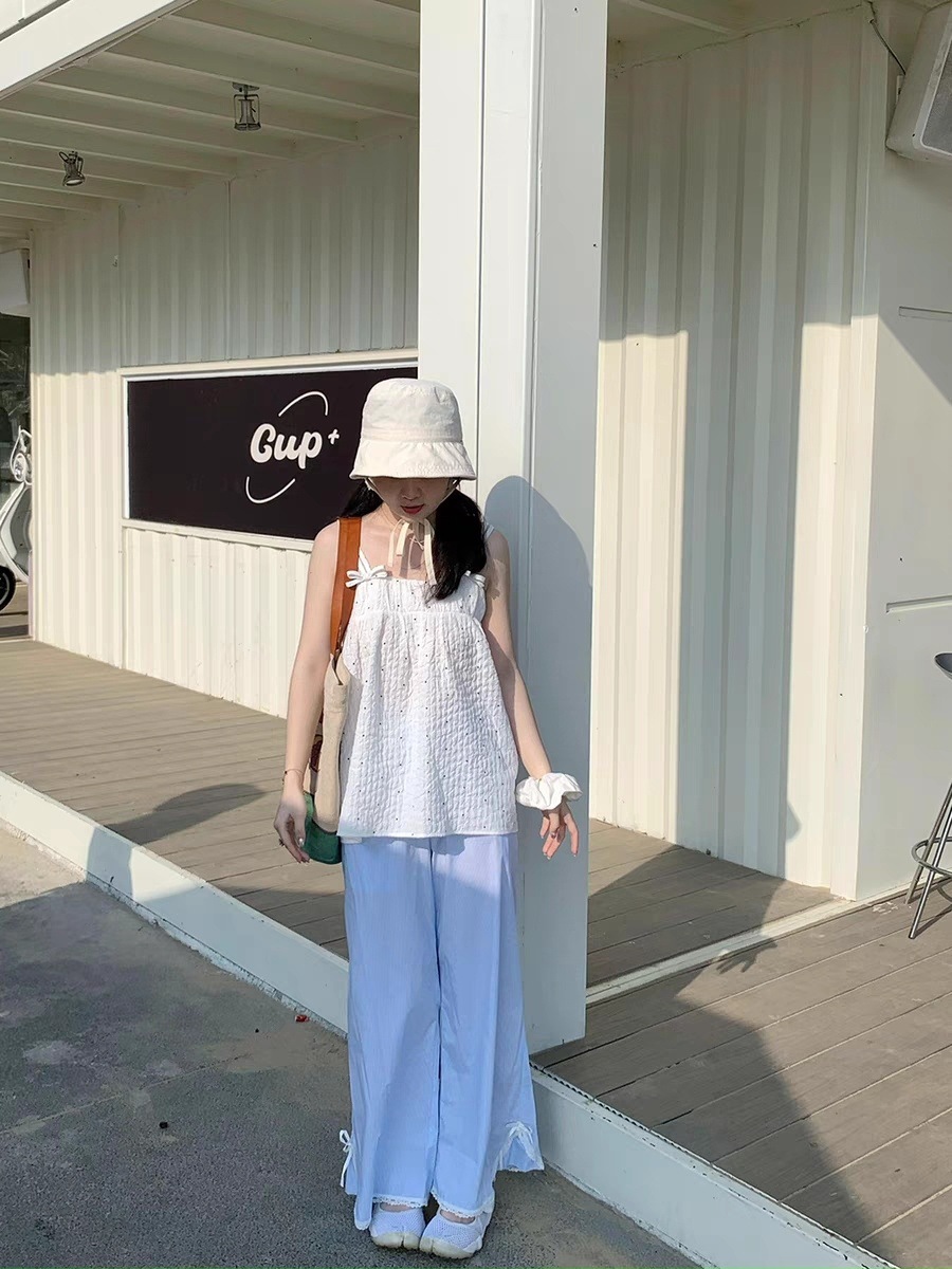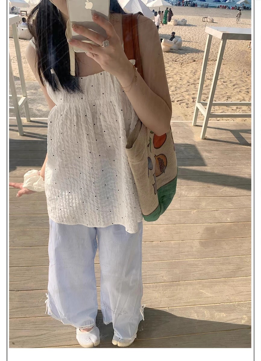 【犯规可爱白色褶肌理感波点吊带】度假风新款甜美小清新波点吊带,蝴蝶结减龄娃娃衫露肩,甜美宽松夏季蝴蝶结无袖宽松上衣女外穿QQ
