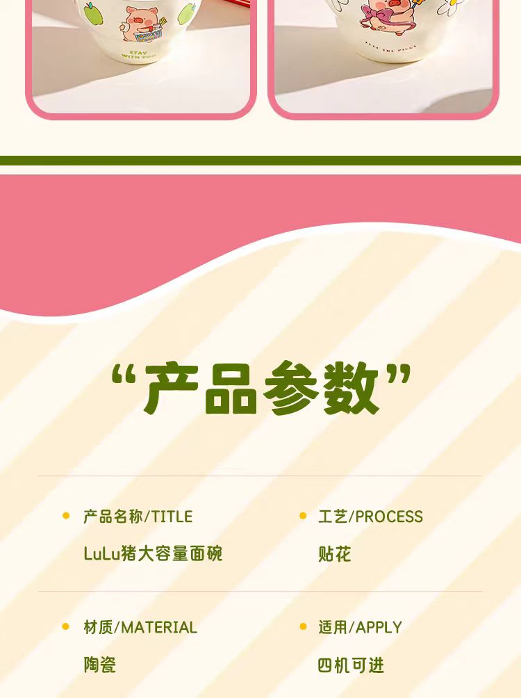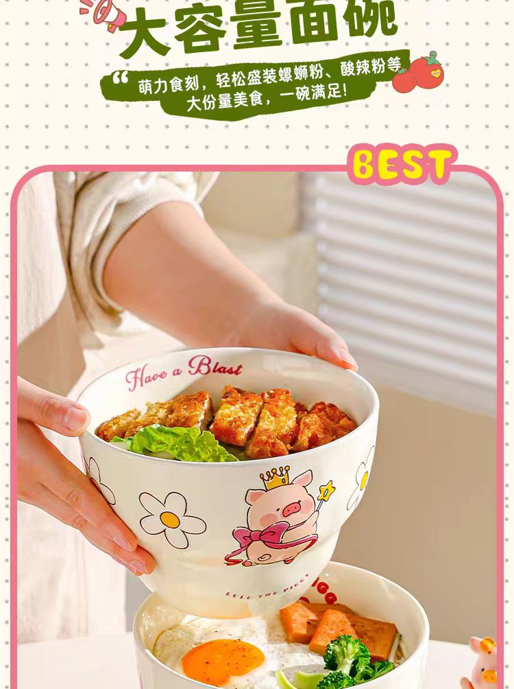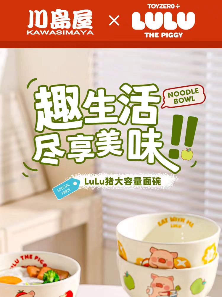 4楼Eubelle欧蓓 川岛屋&lulu猪联名 拉面碗2025新款漂亮汤面碗泡面碗大碗 活动价:46元
