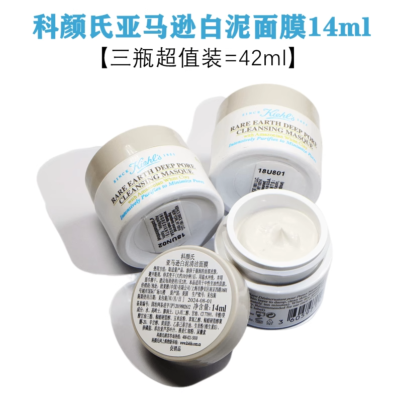 泥膜课代表!科颜氏白泥面膜14ml小样旅行试用 减少闭口清洁涂抹