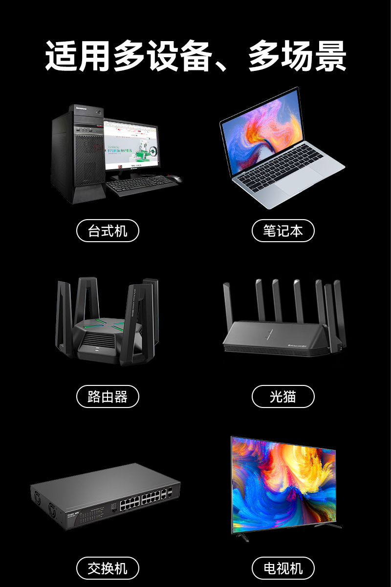 严选【纯铜过测黑色3米】超六类网线 CAT6千兆网工程家用RJ45网络跳线1根