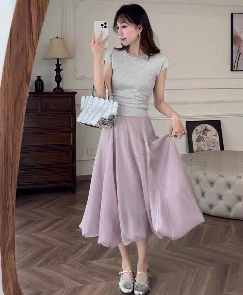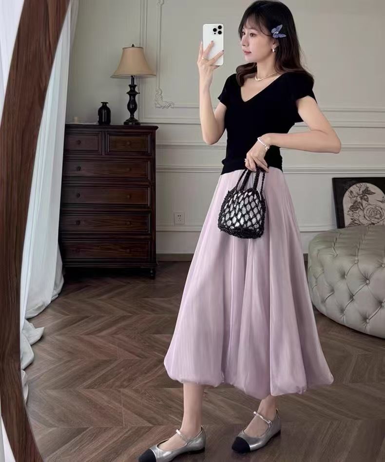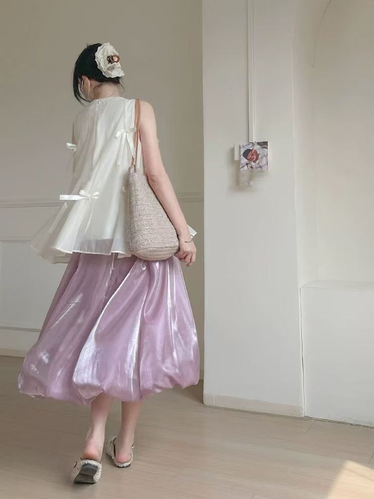 花苞裙的裙型也太美了吧!是那种很自然的线条感,像倒开的花朵一样~