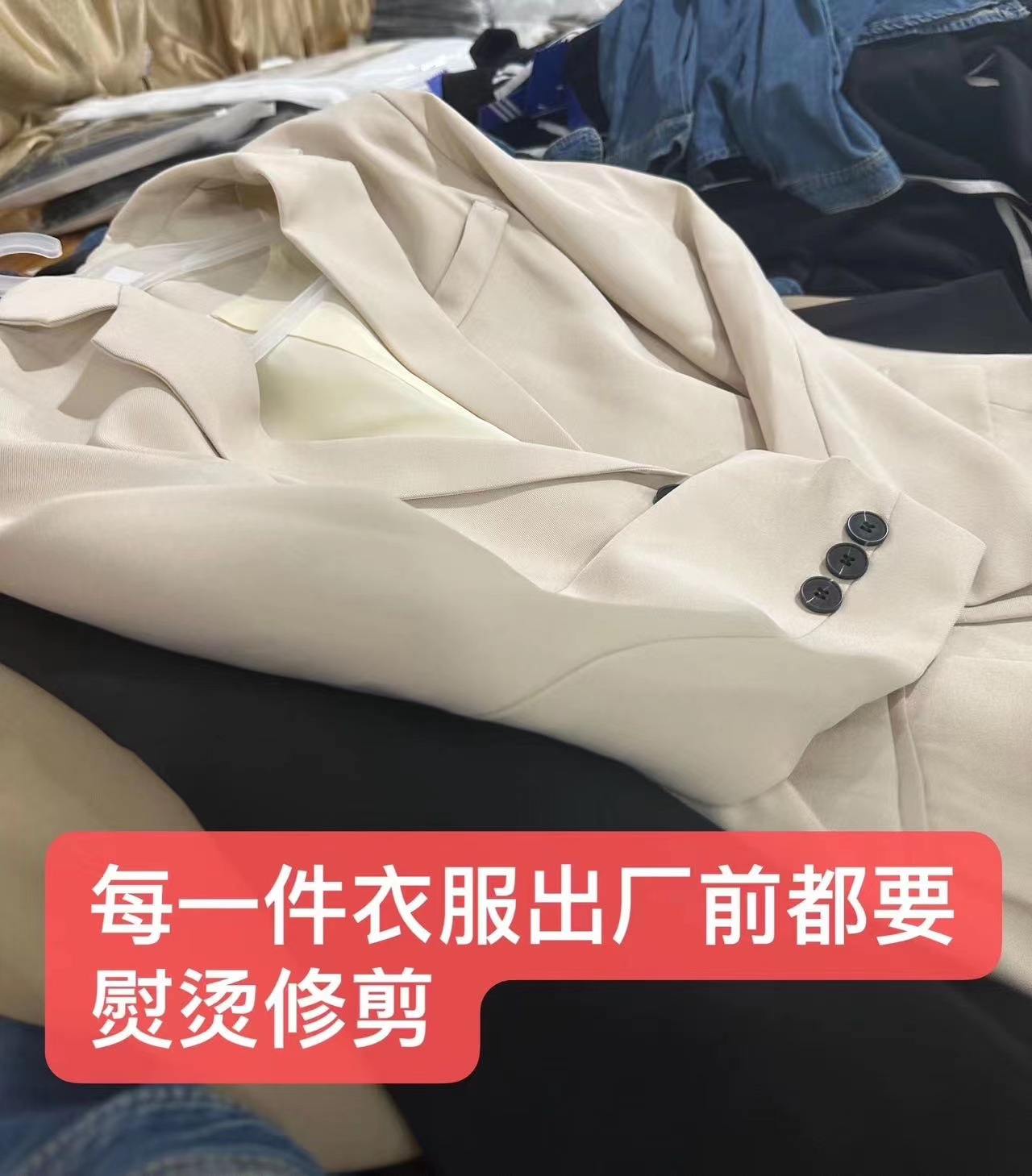 面料光洁柔顺自带肌理感, 挺阔垂顺不易皱