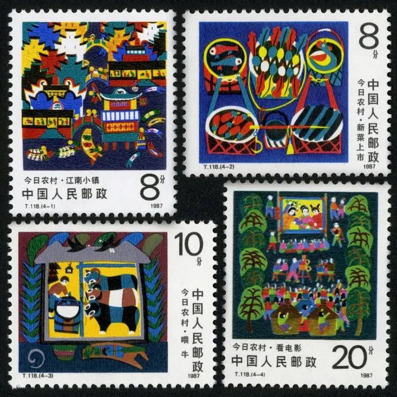 1987.6.25。影写版。P11.5。 (1)(4)31mm×38.5mm、50(10×5)。 (2)(3)38.5mm×31mm、50(5×10)。 张新英、邵其华、陈德华。北京邮票厂。