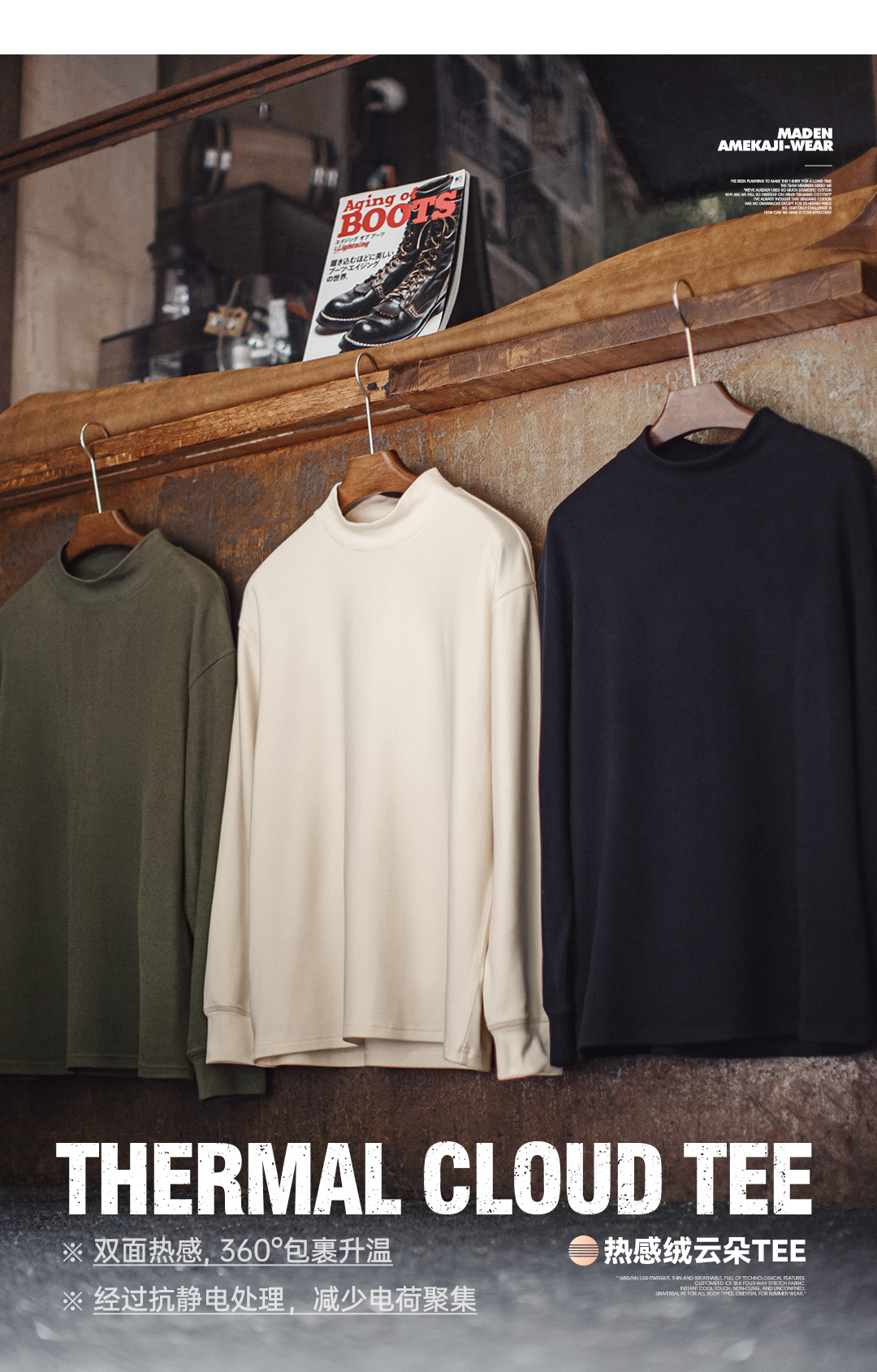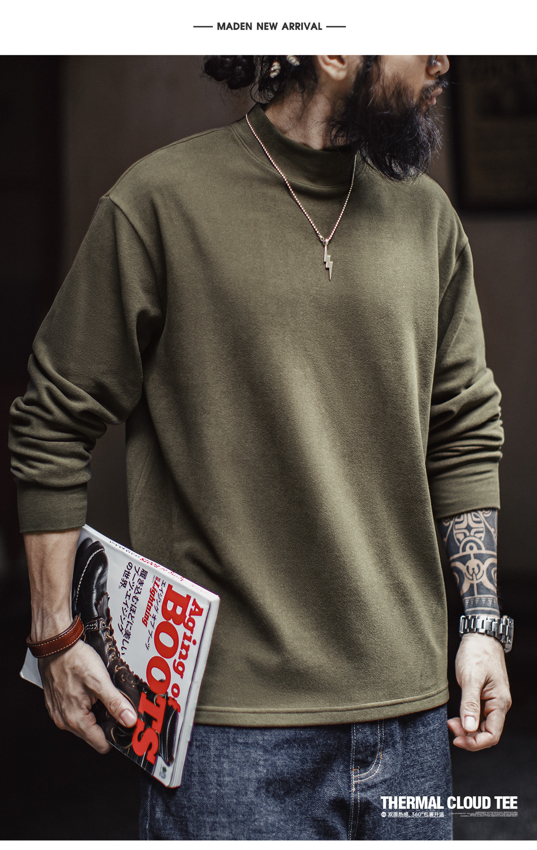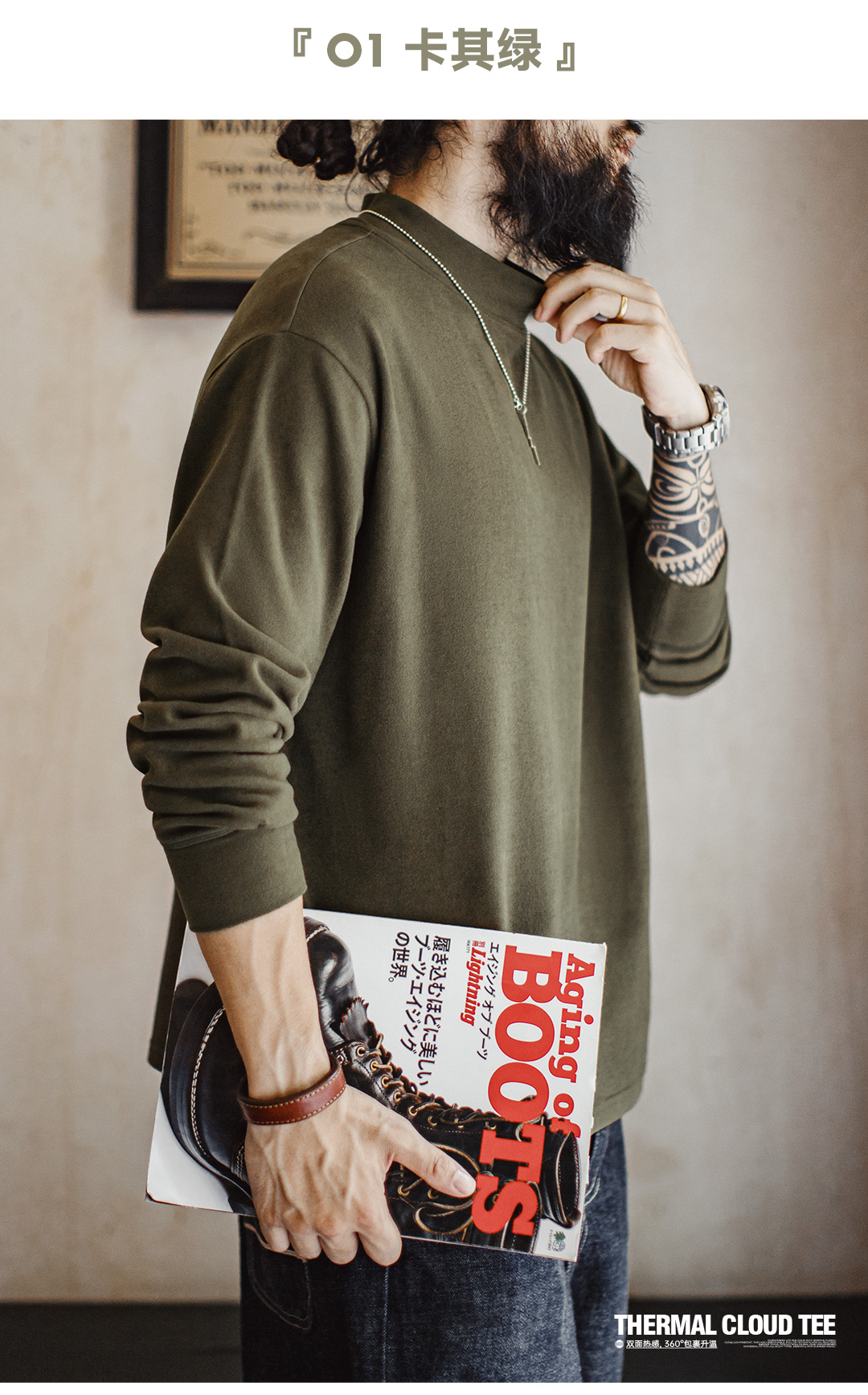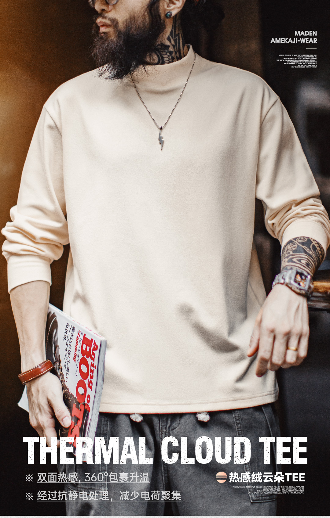 马登工装休闲半高领长袖打底衫纯色保暖内衣加厚抗静电内搭男款
