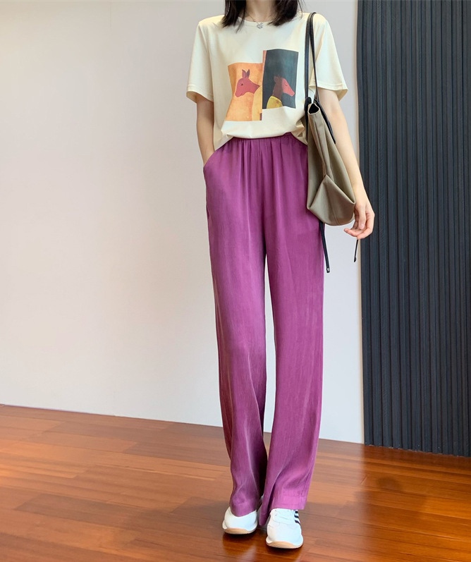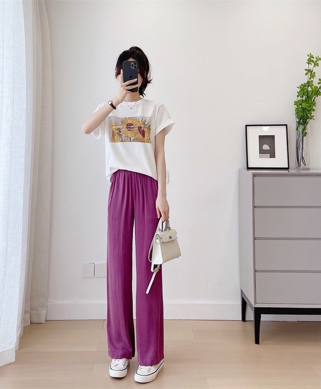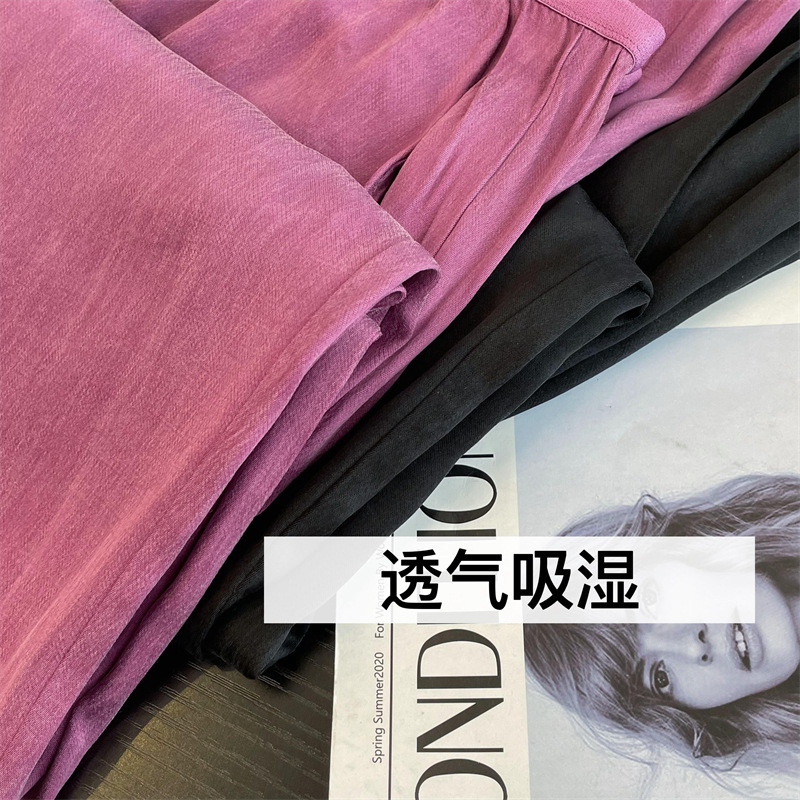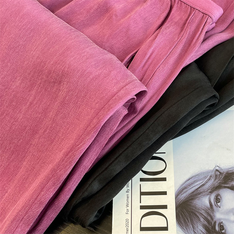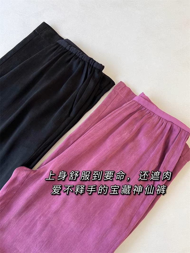 轻~柔~垂!这条裤子是我的万事胜意。一条高品质填满你心间的品位需求。雾面铜氨丝,其实这几年已经很少见了,因为实在贵,在面料成本和真丝一样了,雾面铜氨丝几乎都是进口的,早几年曾经卖过这个面料的连衣裙498,真的是重磅,肉眼可见高级感,环保面料,铜氨丝需要30多道工艺,才能制成,所以它是非常昂贵的,