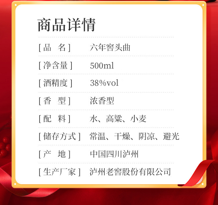 【扫码有好礼】38度泸州老窖六年窖头曲酒(09版)五码装500ml 泸州老窖官方旗舰店