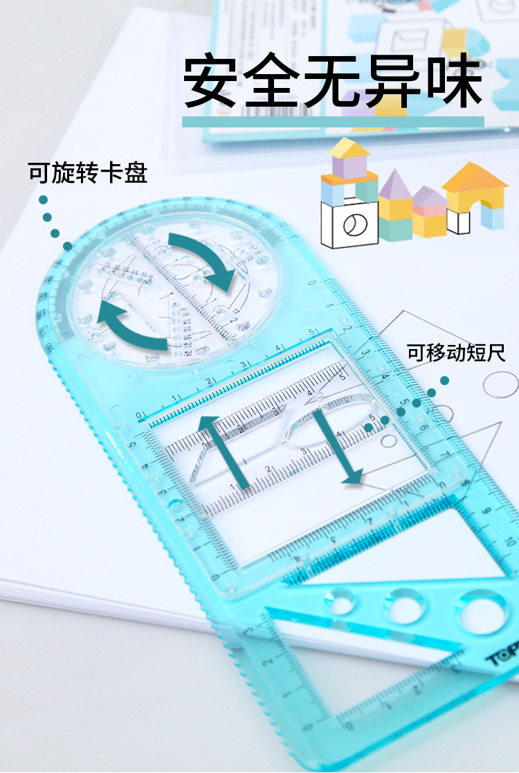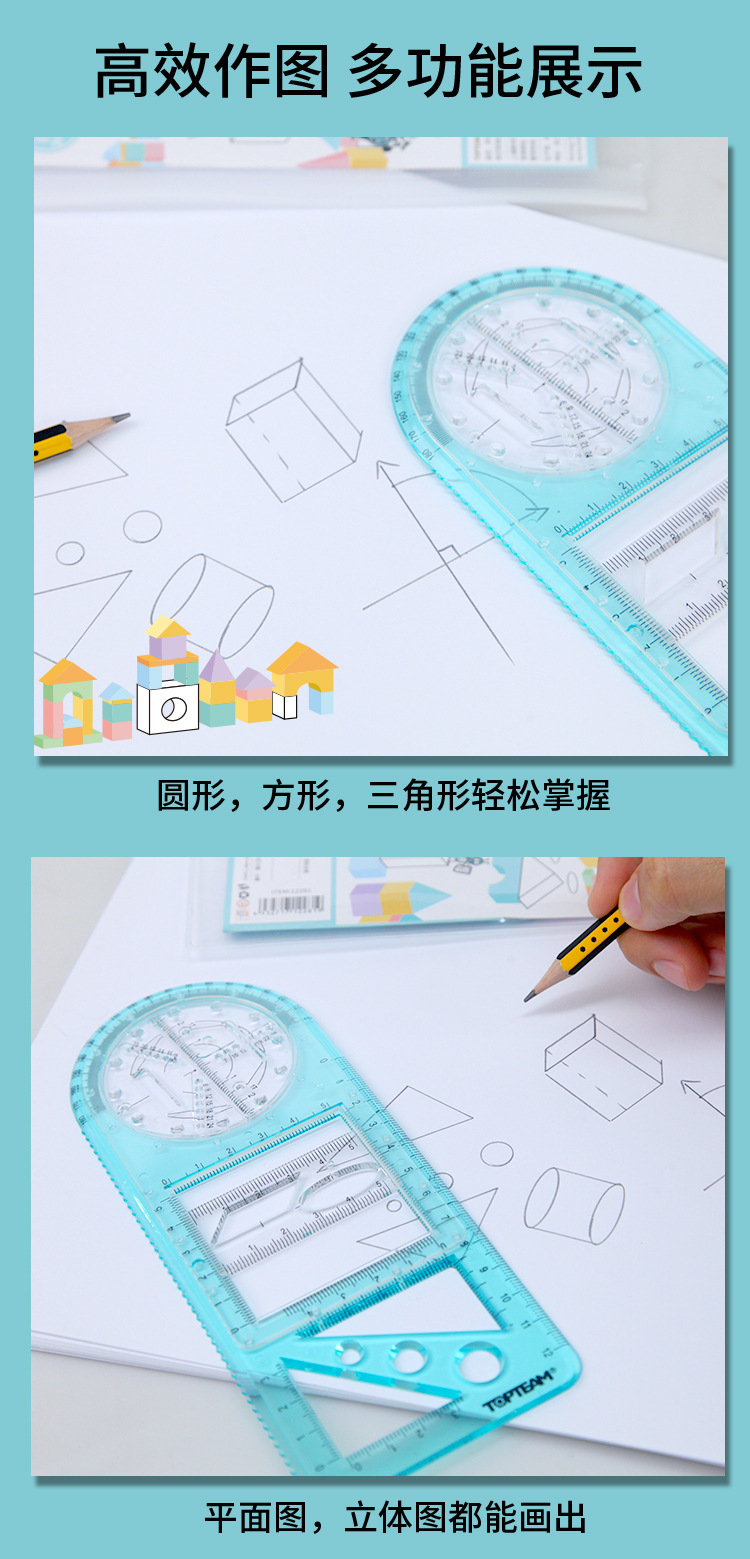 千千圈多功能绘图尺网红尺子套装数学画圆椭圆模板考试高中生尺子 商品图2