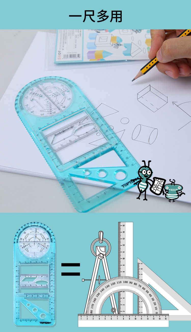 千千圈多功能绘图尺网红尺子套装数学画圆椭圆模板考试高中生尺子 商品图0