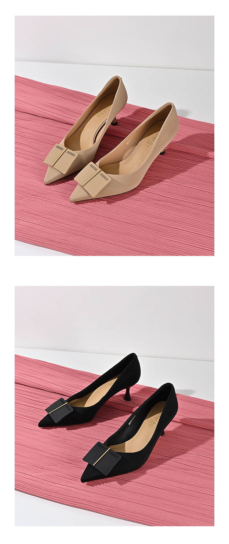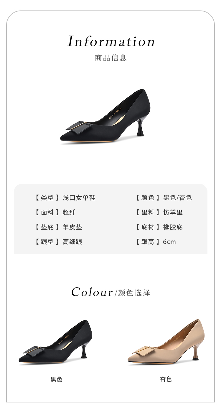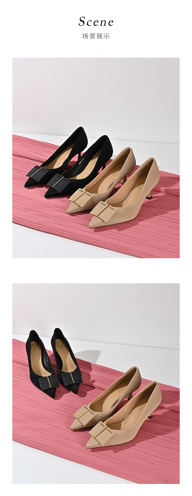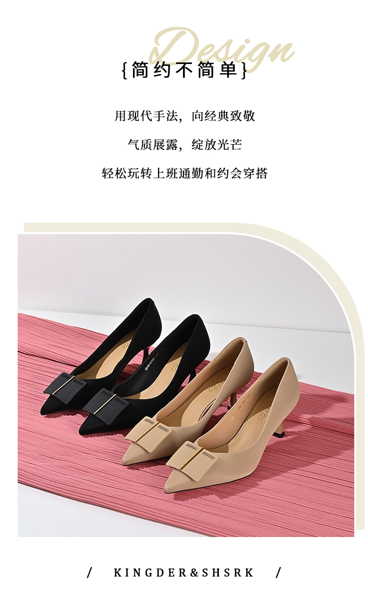 2024经典鲨春季女鞋新款6cm细跟浅口哑光单鞋KW198-D17061