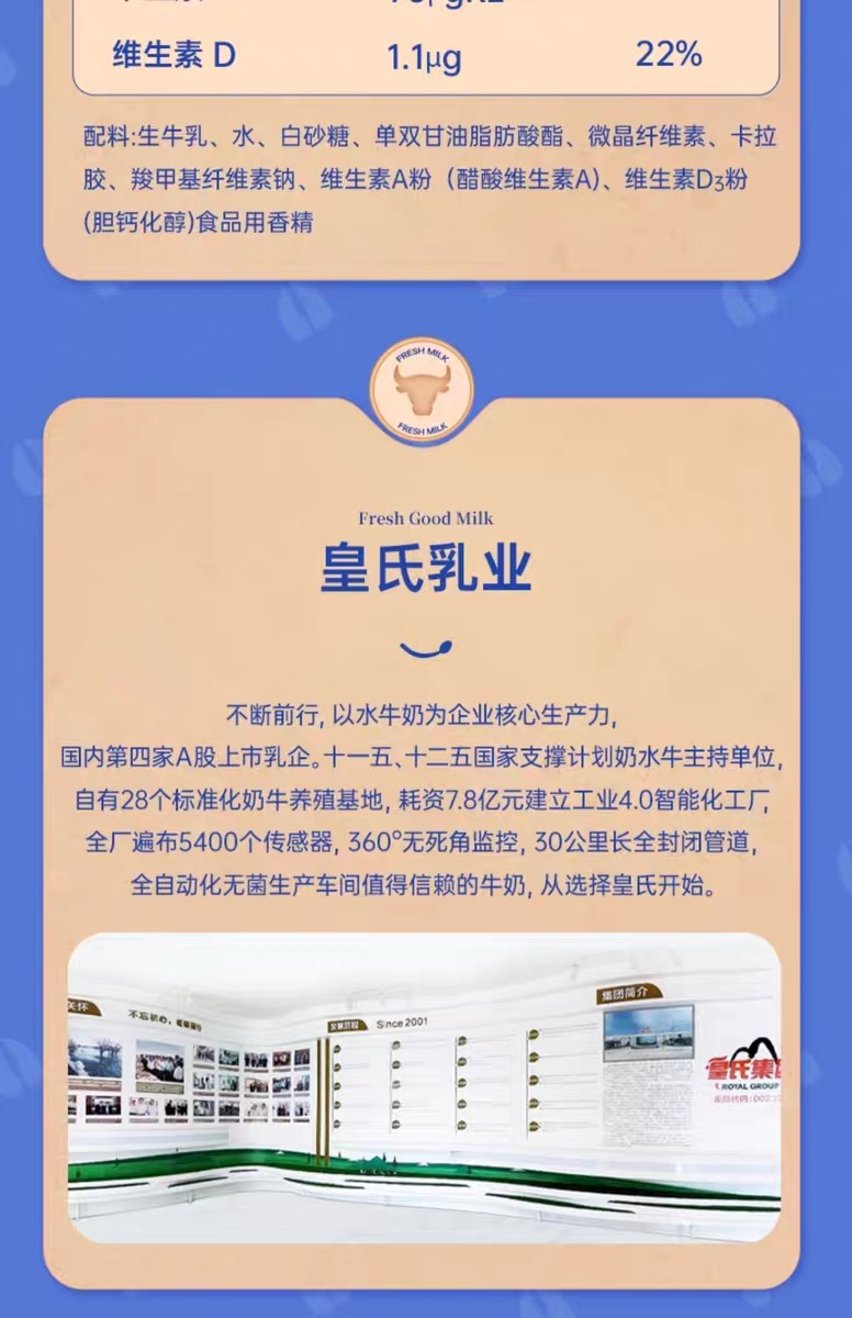 皇氏集团乳业板块主要经营牧草种植、奶牛养殖到乳制品加工、销售的全产业链业务,主要产品以水牛奶、黑白花牛奶为主要原料的巴氏杀菌奶、水牛奶系列,特色果奶、酸奶等业态乳制品和乳饮料。