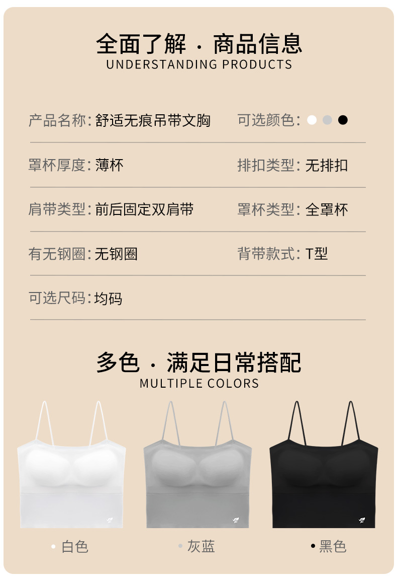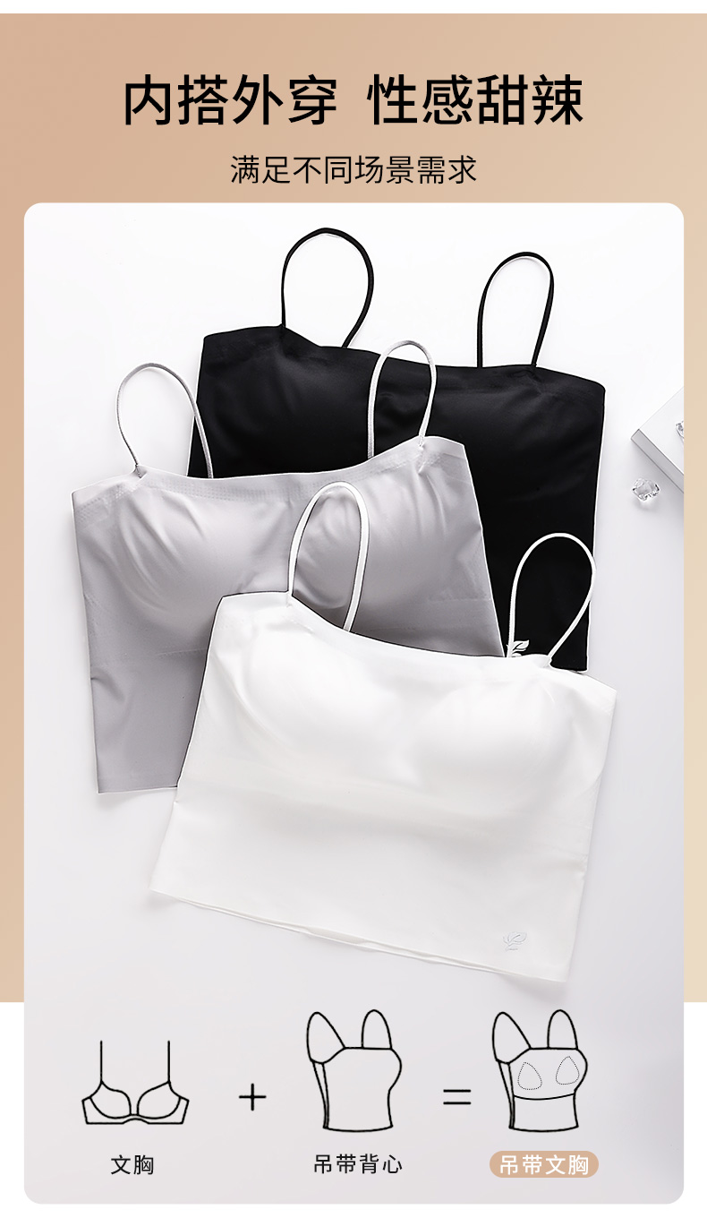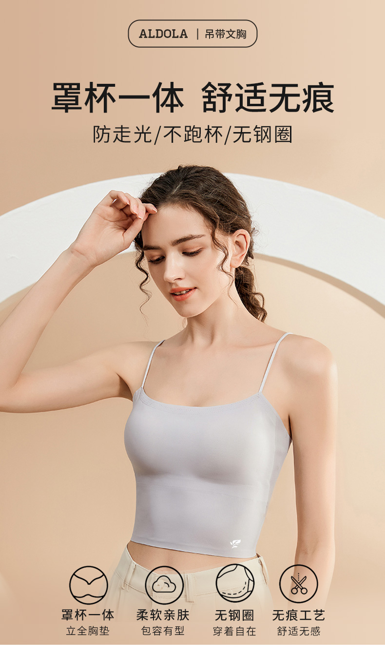 雅黛丽薄款舒适无痕吊带文胸女罩杯一体性感美背百搭可外穿吊带