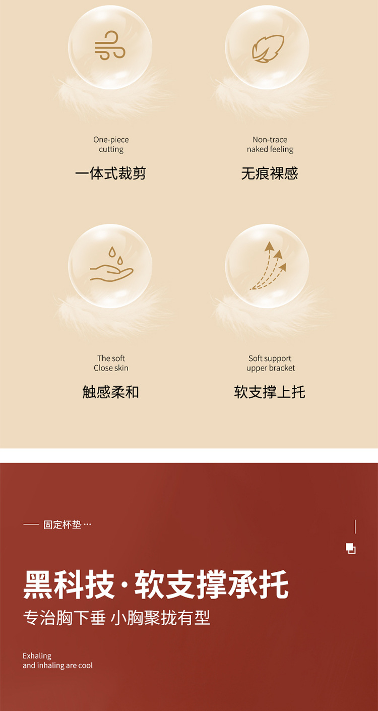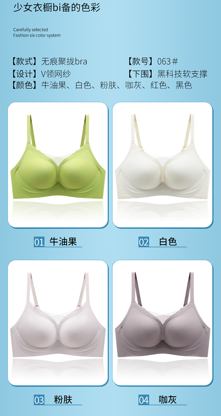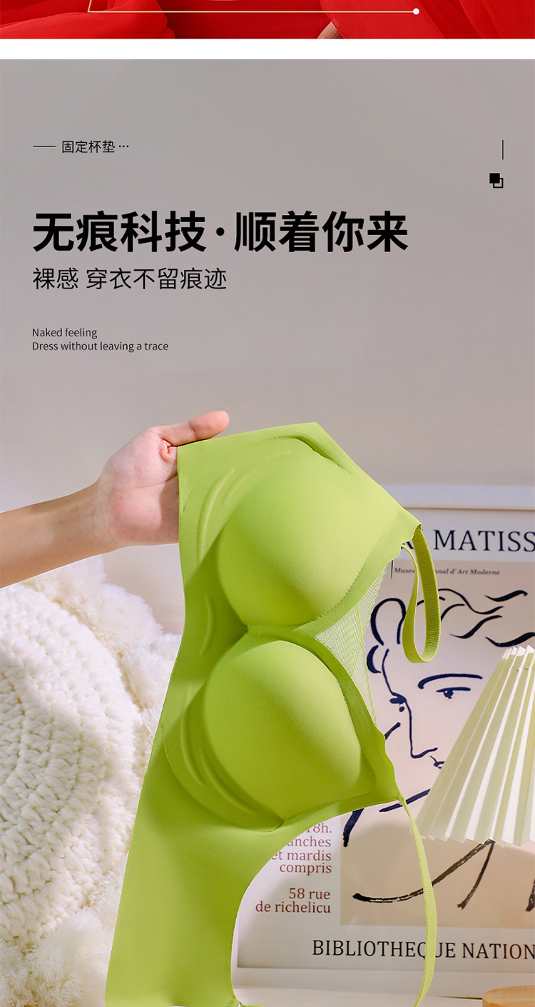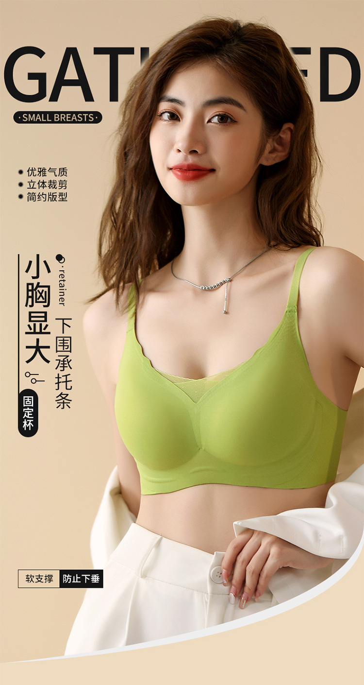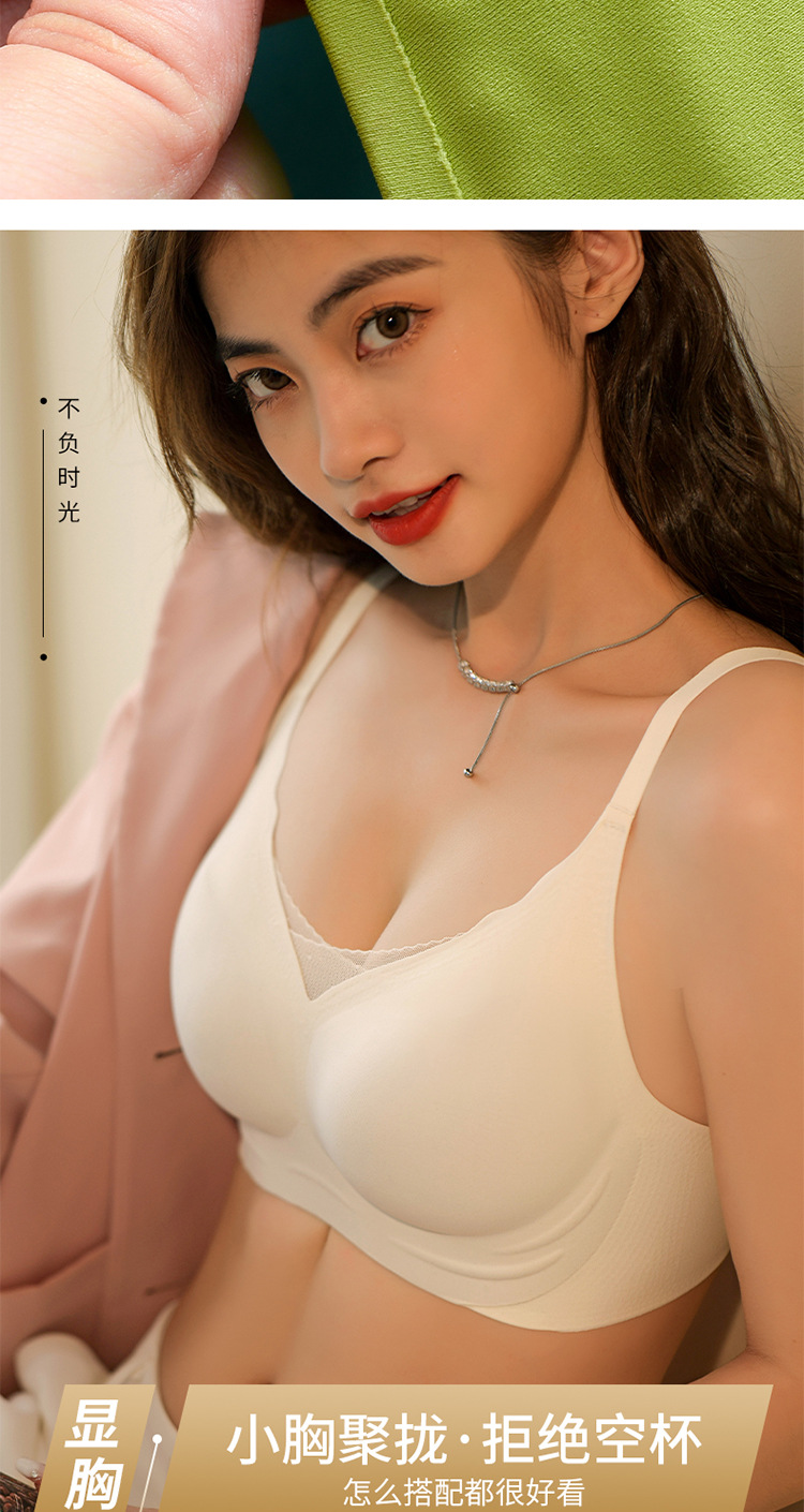 【时尚性感v领!黑科技软支撑固定杯无痕内衣】一体式裁剪触感柔和不跑杯 女士小胸显大聚拢透气青年可机洗文胸粉丝专属