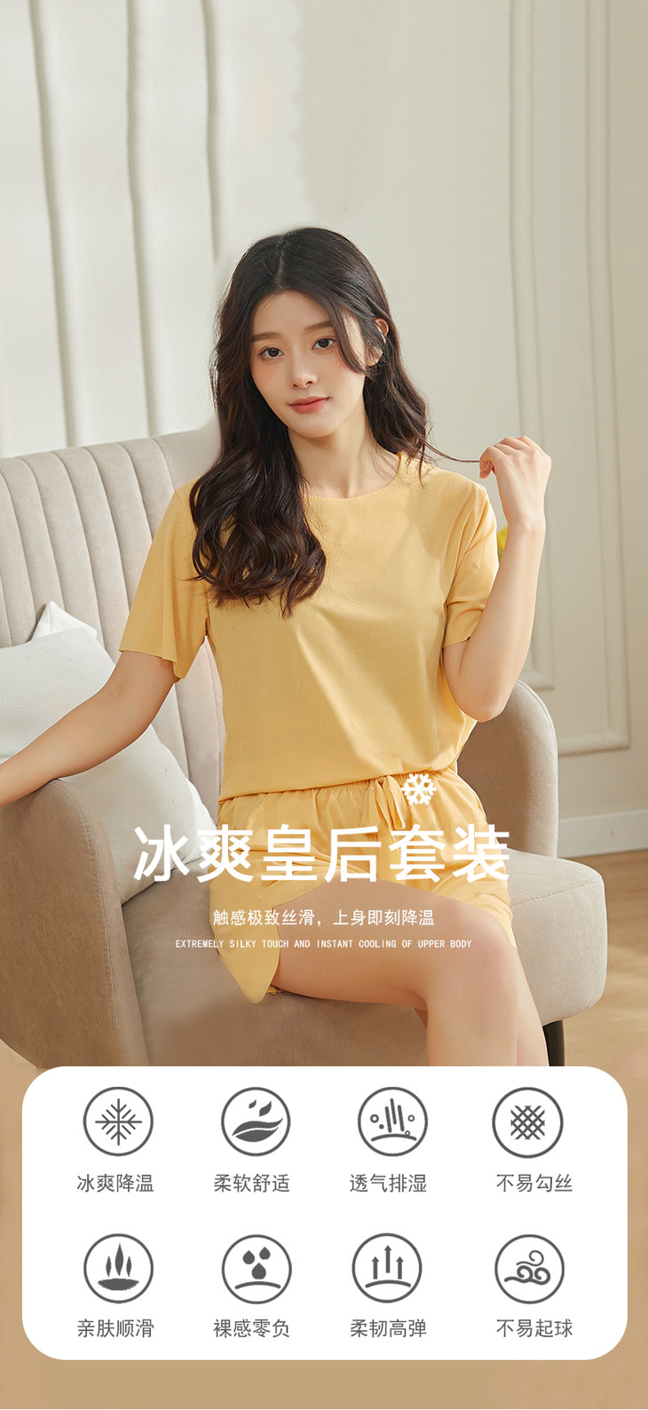 买2套省20【冰丝垂感家居服套装】滑溜溜冰冰凉可居家可外穿的两穿睡衣,冰丝裸感无痕丝滑亲肤舒适柔软,短袖薄款短裤两件套家居服套装!器