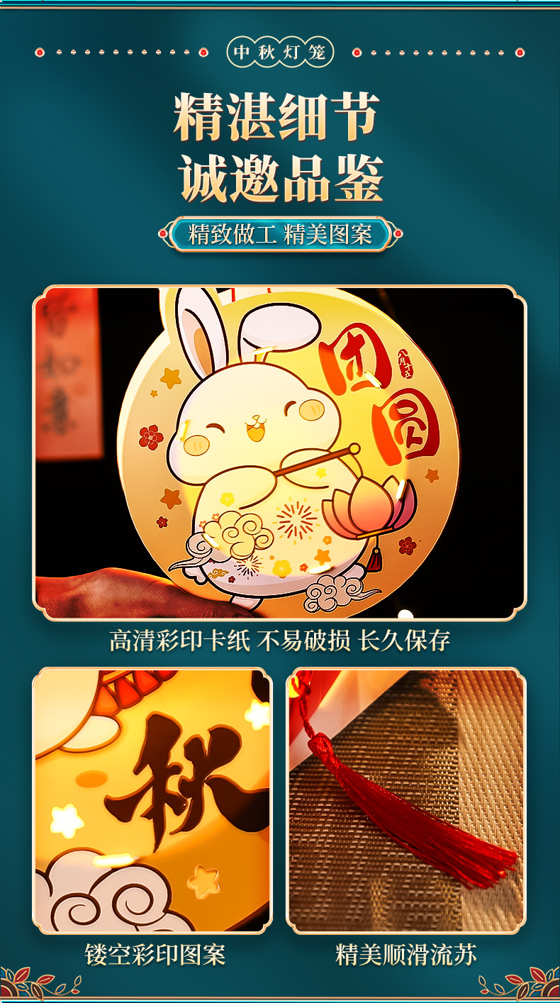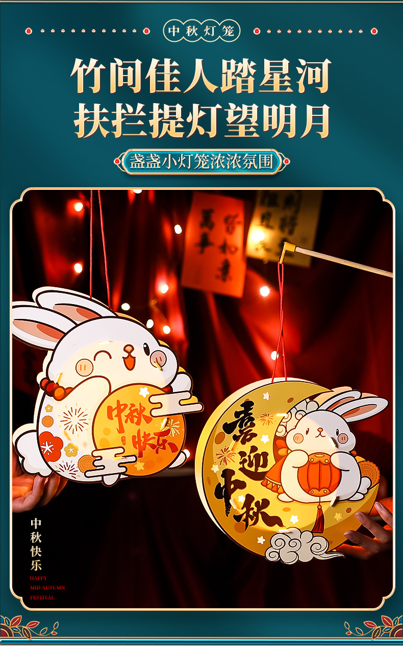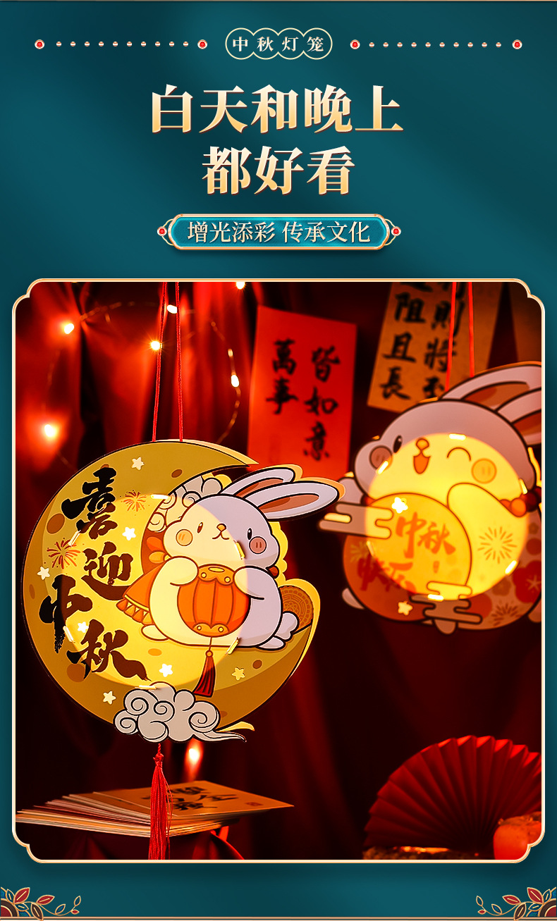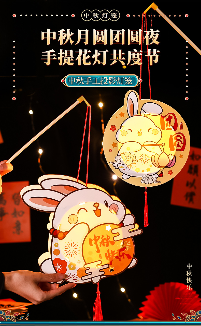 【限时抢❗️19.9抢4个🔥发光投影灯笼】增光添彩,传承文化,月圆团圆夜,手提花灯共度节!元宵节灯笼新款兔子花灯手工diy 材料包儿童手提卡通