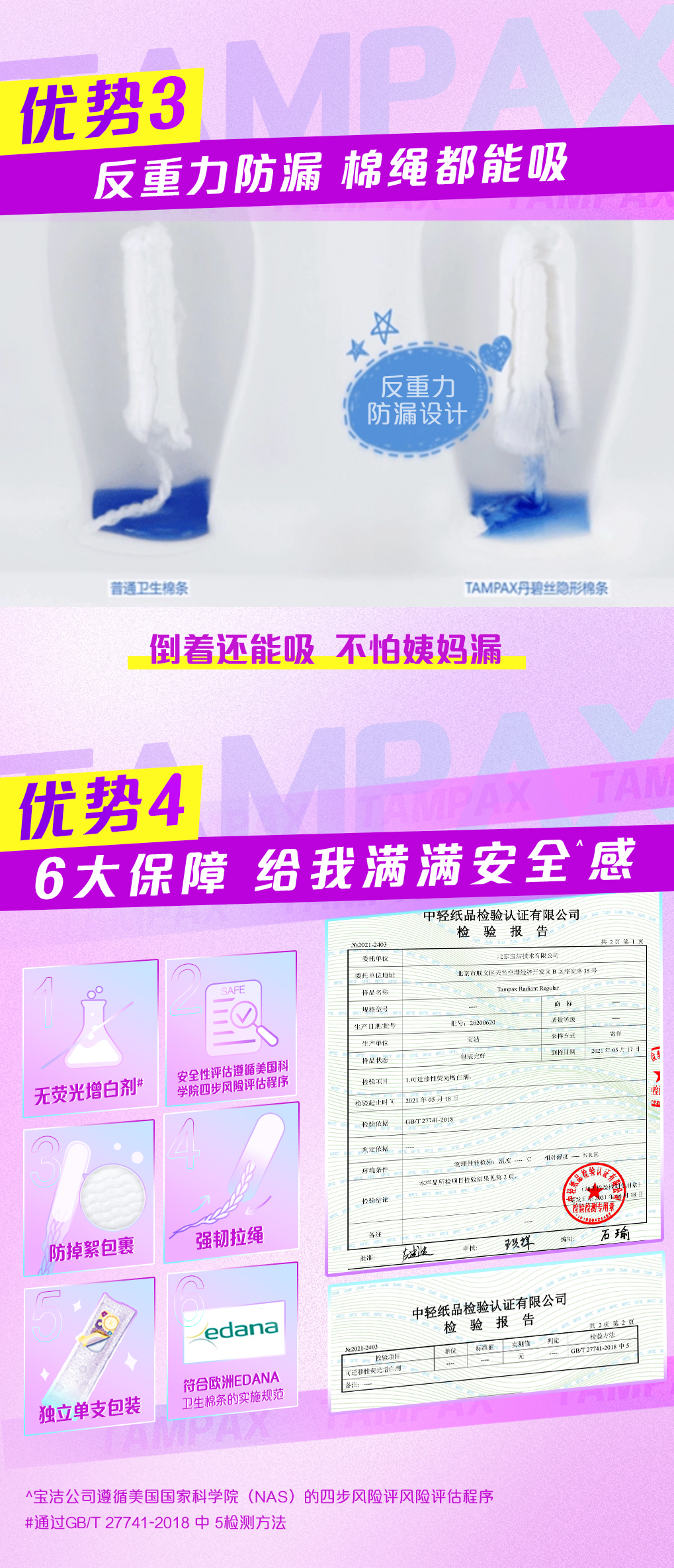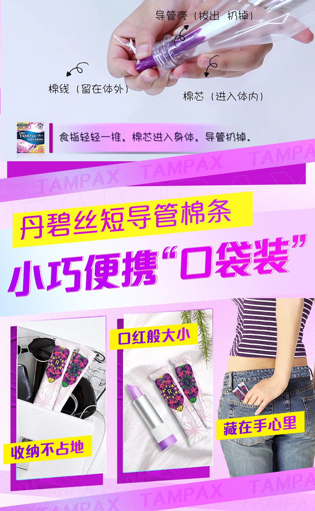 丹碧丝tampax卫生棉条小号隐形神器卫生巾丝棉导管式内用流量女士