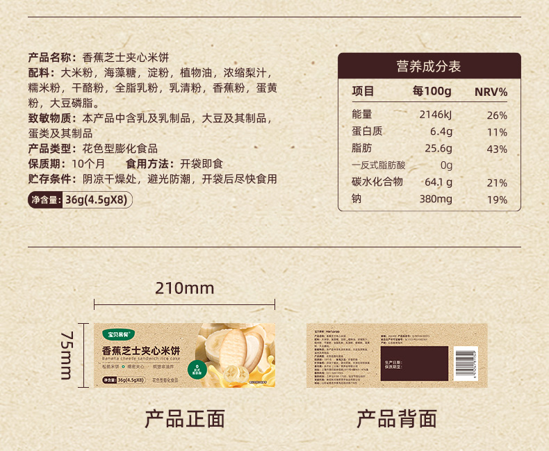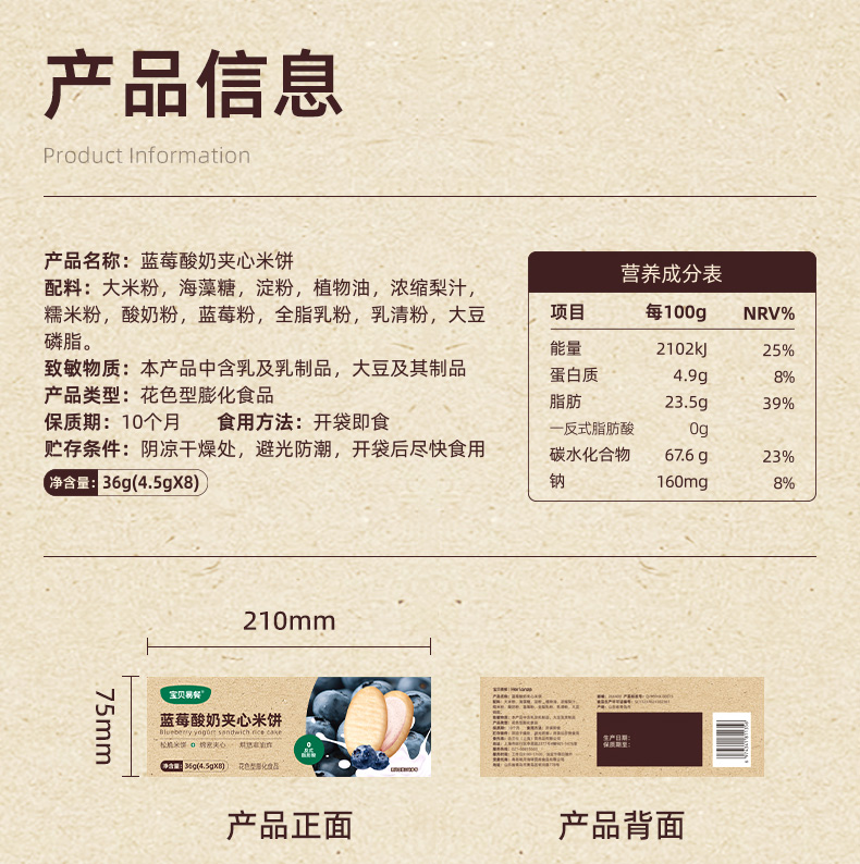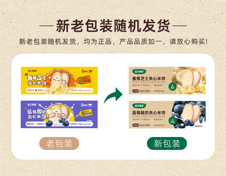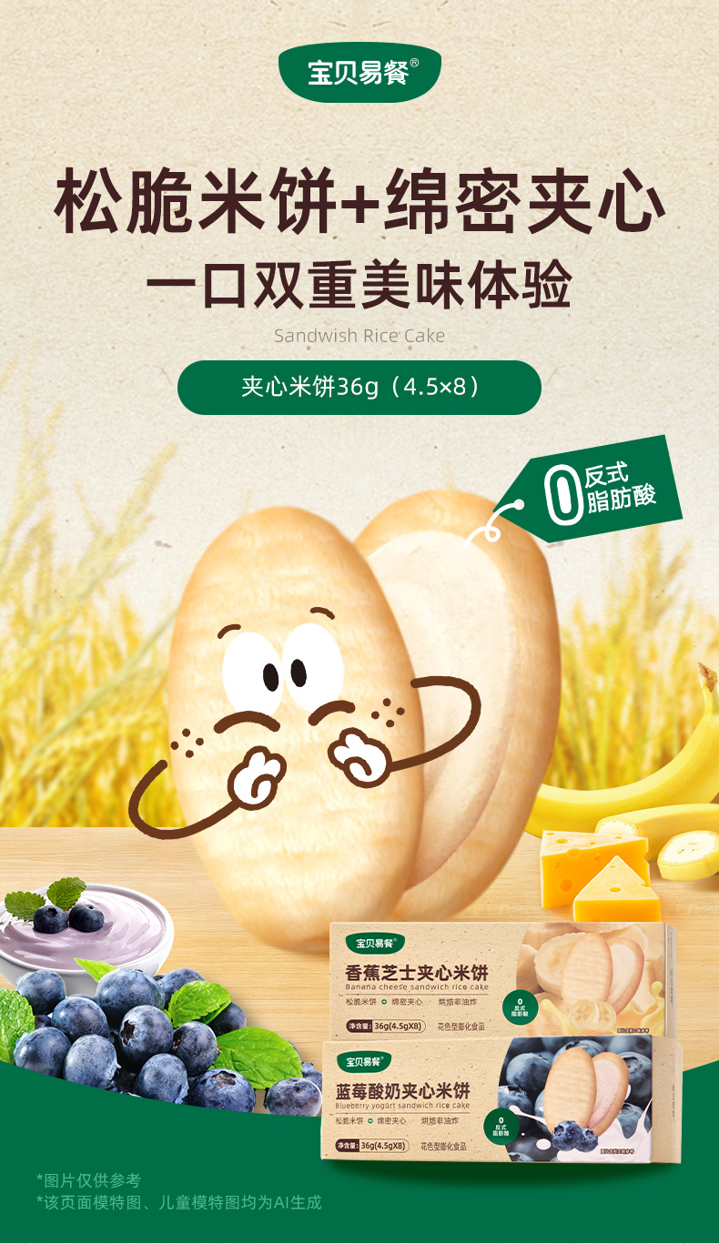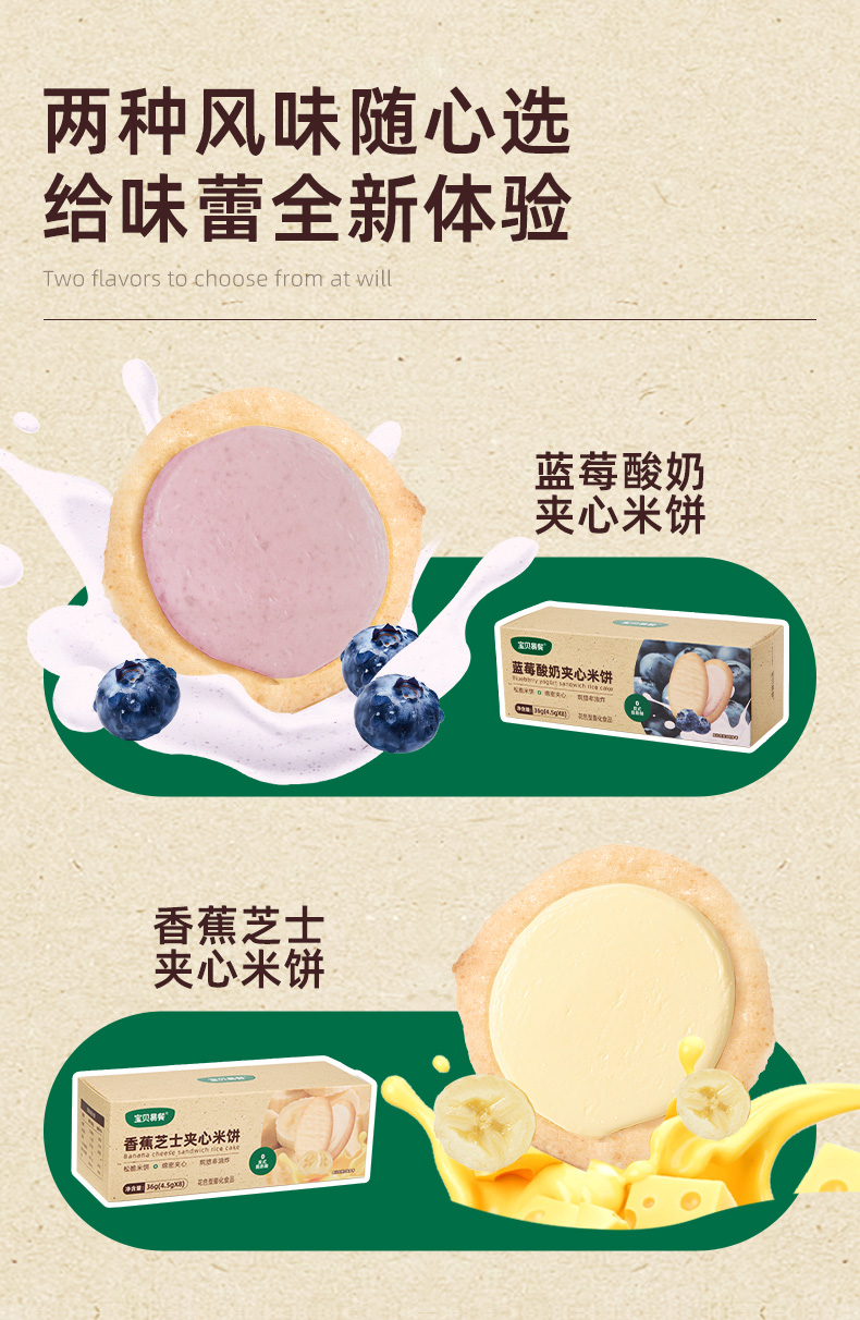 宝贝易餐香蕉芝士/蓝莓酸奶夹心米饼36g(4.5g*8)