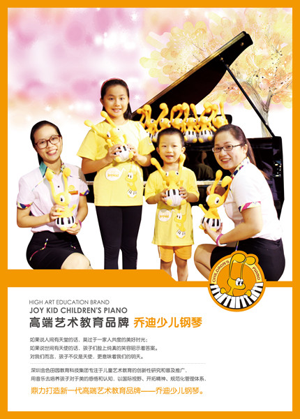 乔迪少儿钢琴成立于2012年,是一家致力于3-12岁少儿钢琴教育的全国连锁教育机构。其全面引进了台湾先进的教学理念以及原汁原味的台湾核心课程体系,实力雄厚的研发团队、教师资格认证的专业教师队伍以及完整的教学监督培训体系,不但保证了优秀、专业的教学,同时也让孩子得到最专业的钢琴教育。目前乔迪少儿钢琴已在全国成立了300多家分中心,服务于80000多个家庭。