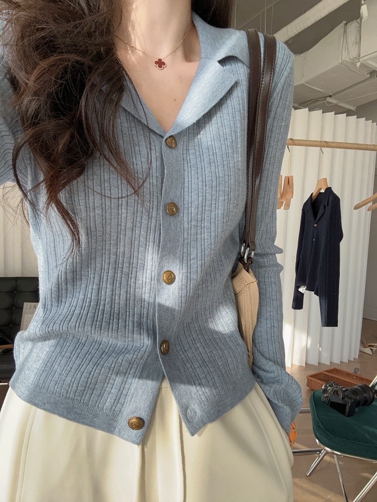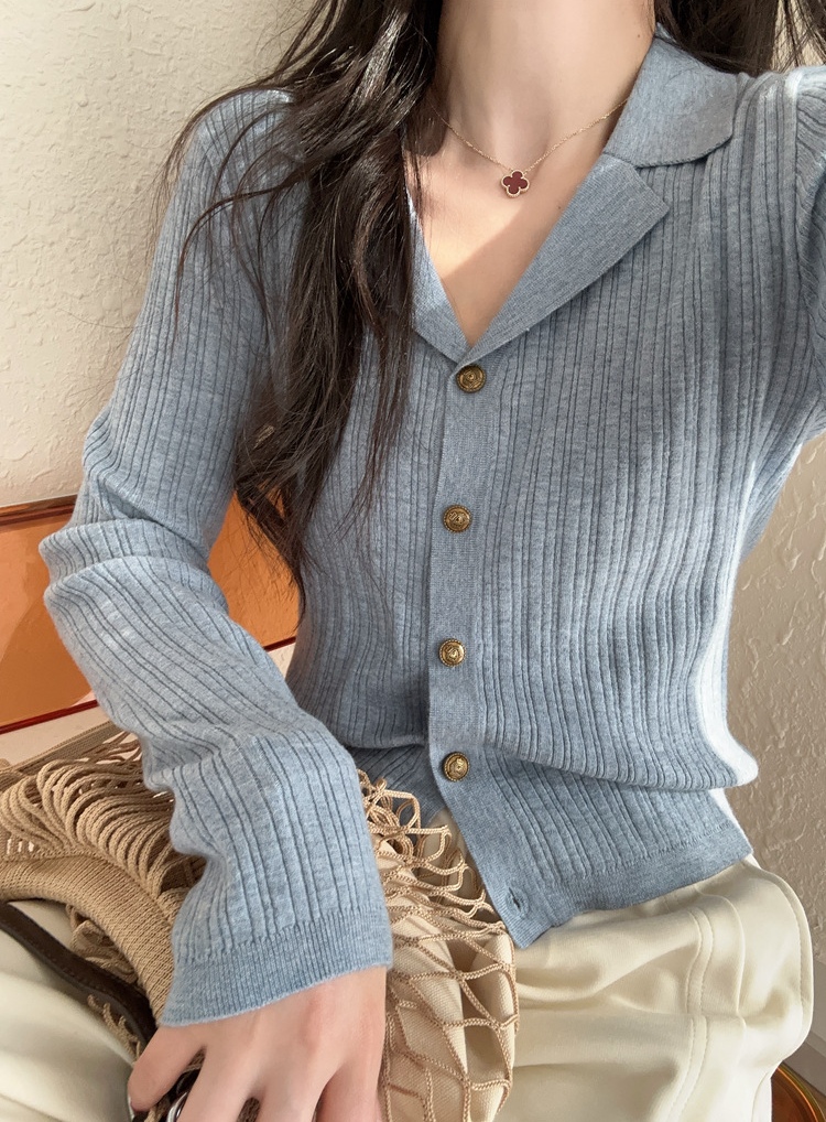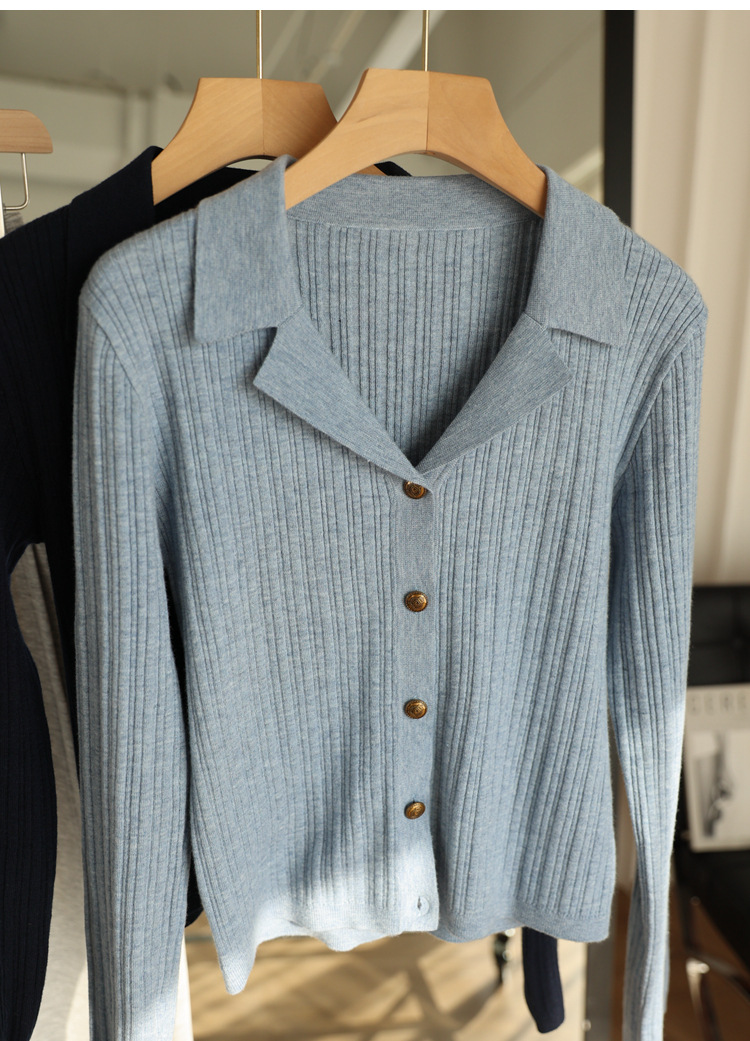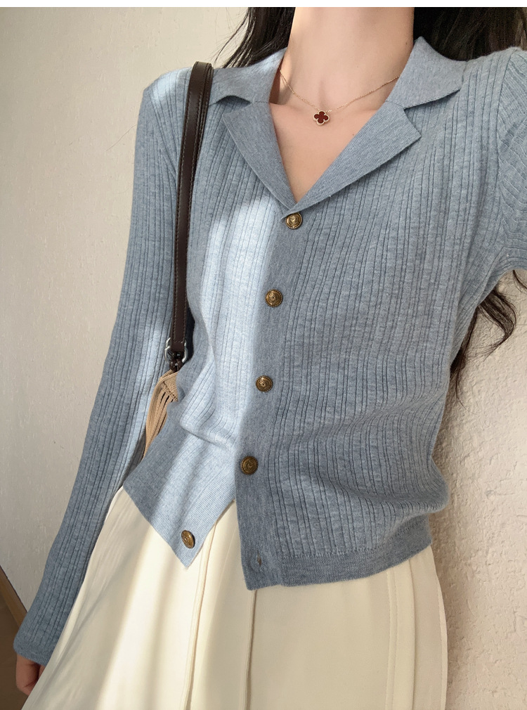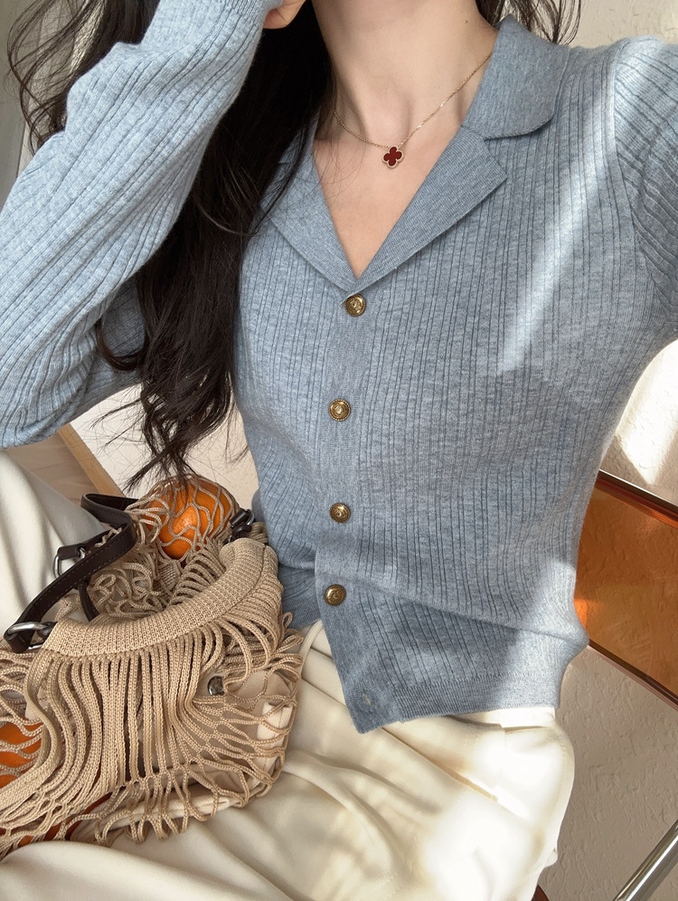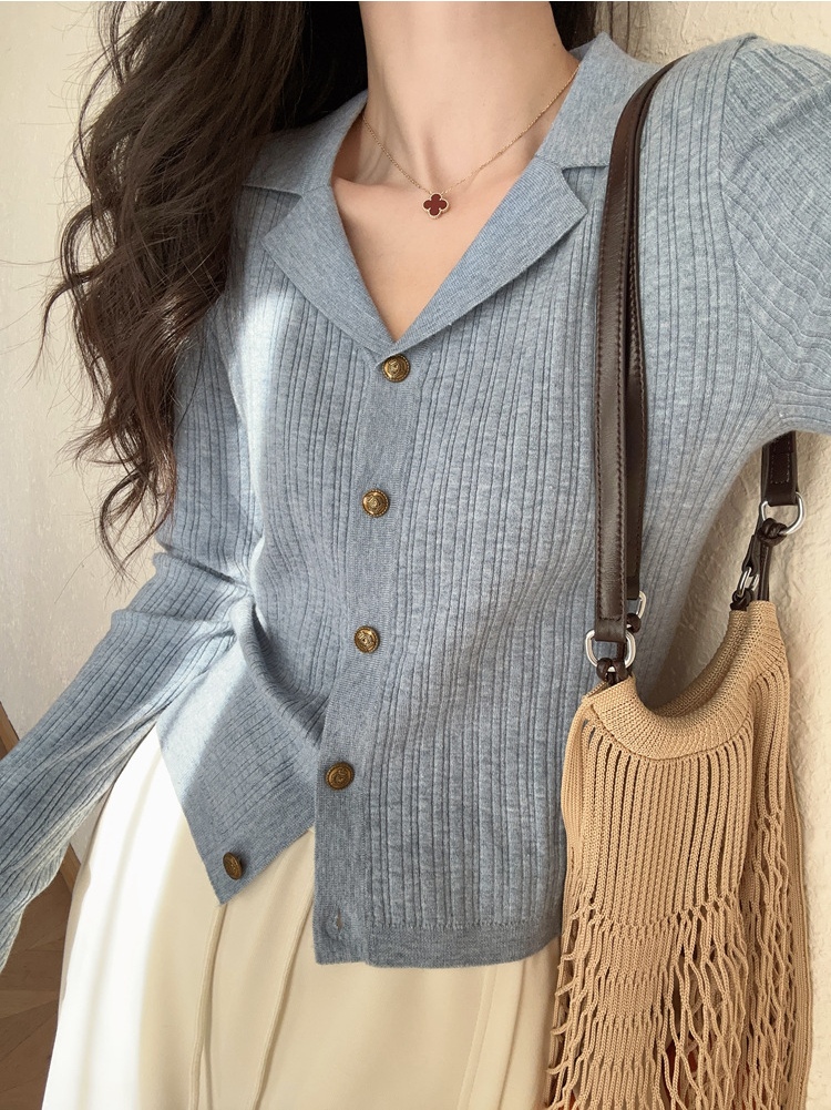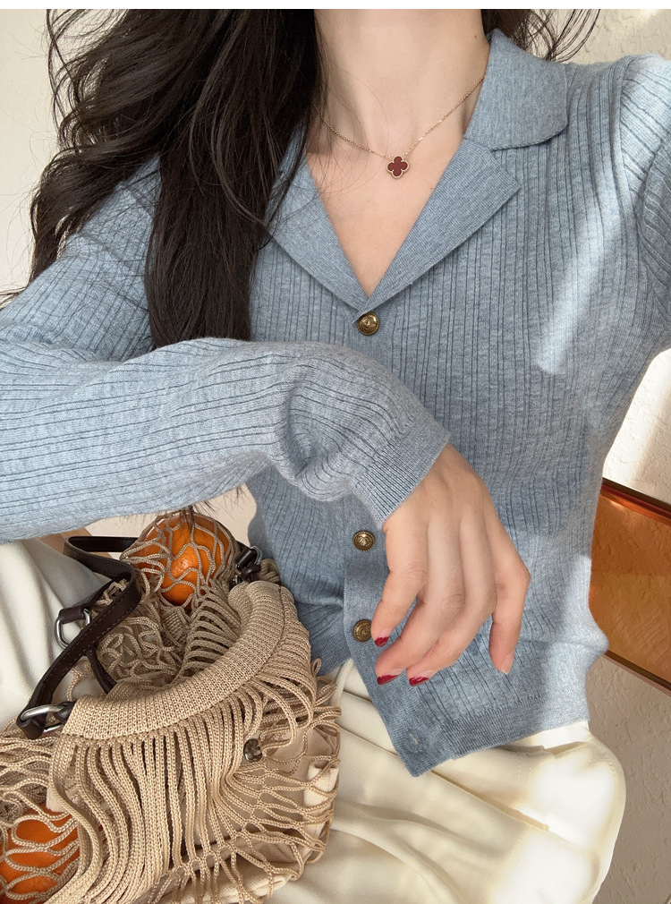 春天根本离不开的针织衫,这款就是妥妥的纸片人上衣啦古巴领设计,展现锁骨线条,巨显瘦!