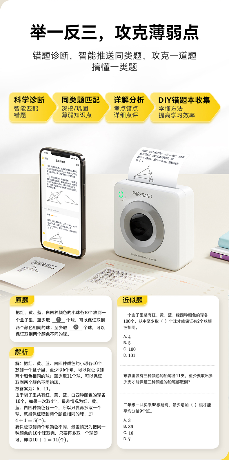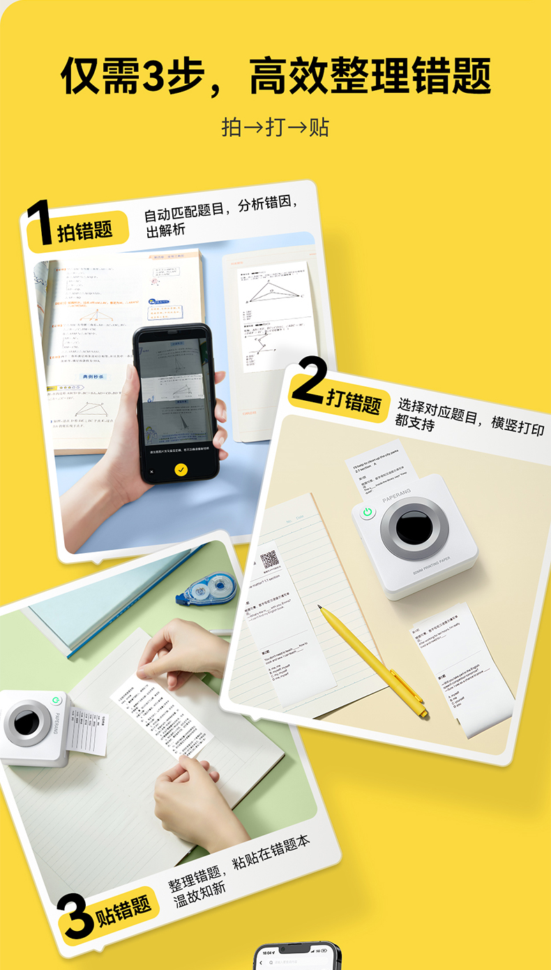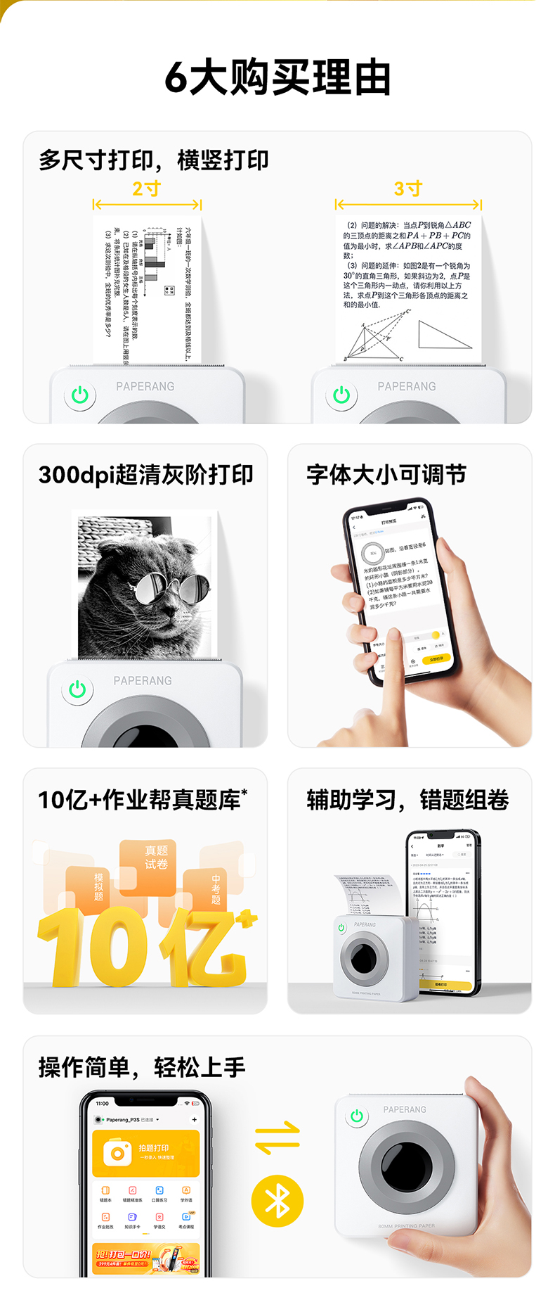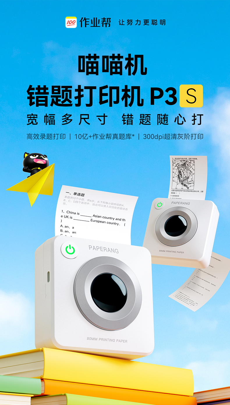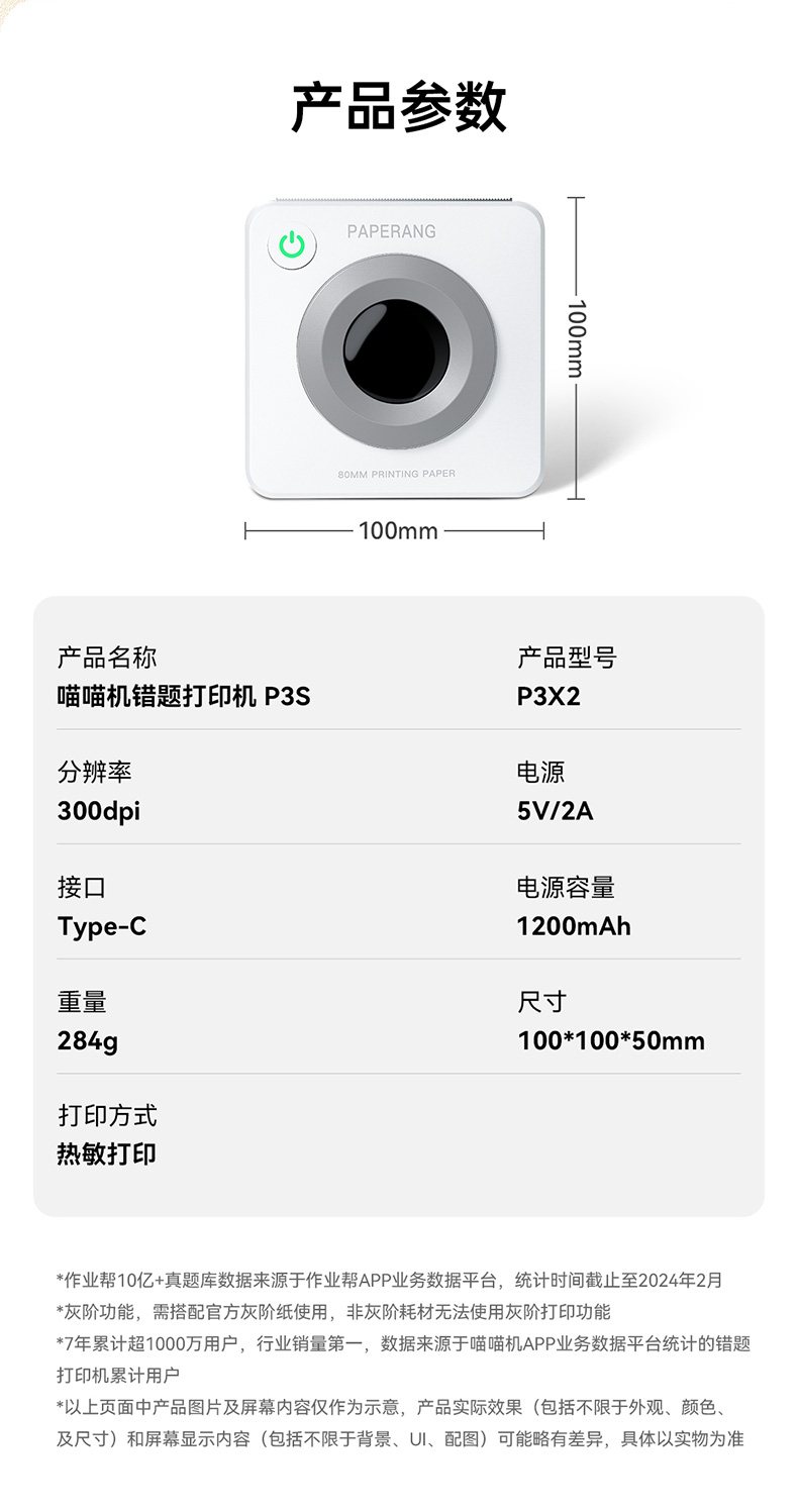 【限时特惠】作业帮喵喵机升级款P3S 高清灰阶双尺寸错题打印机 2/3寸宽幅 支持横竖打印 300dpi高清打印